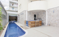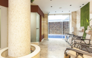 На территории отеля находится большой закрытый бассейн с сауной и джакузи, массажный кабинет, раздевалки, ресепшен с лобби баром, небольшой открытый бассейн с лежаками, большой зеленый участок площадью 100 м2 и 10 парковочных мест для гостей отеля.