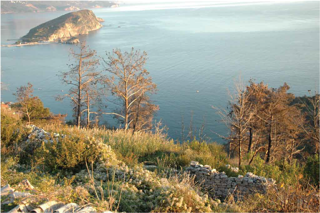 Участок под строительство над пляжем Могрен. Площадь - 11246 м2. Участок расположен на верхней части юго-западного склона горы Спас, откуда открывается панорамный вид на Будванскую Ривьеру, пляжи, крепость Могрен. К верхней части участка примыкает дорога. Высота над уровнем моря от 150 до 200м. Удаленность от моря 500м (воздушная линия). На участке развалины 3-х старых каменных домов. Проведены геологические исследования, по итогам которых получено положительное заключение.