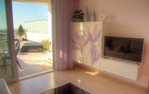 Квартира с 2 спальнями, гостиной с кухней, ванной, и просторной террасой с видом на море. Также квартире принадлежит кладовая комната, площадью 7 м2. Вся мебель установлена на заказ от лучших итальянских и немецких производителей. В квартире есть все, что необходимо для комфорного отдыха, а также для постоянного проживания. Современный стиль, высокое качество строительства и отделочных работ.