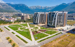 У комплекса большая собственная территория, на которой обустроен парк с фонтаном, множеством средиземноморской зелени, скамейками для отдыха, прогулочными местами для домашних питомцев, велосипедными дорожками и детскими площадками.