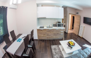Здание мини-отеля построено в 2013 году, оно состоит из трёх этажей, в нем 5 отдельных апартаментов и есть техническое помещение. В нескольких апартаментах есть терраса с восхитительным панорамным видом на море, в остальных вид на горы. В номерах есть кондиционеры, кабельное телевидение, интернет, кухня и все необходимое для комфортного проживания гостей.