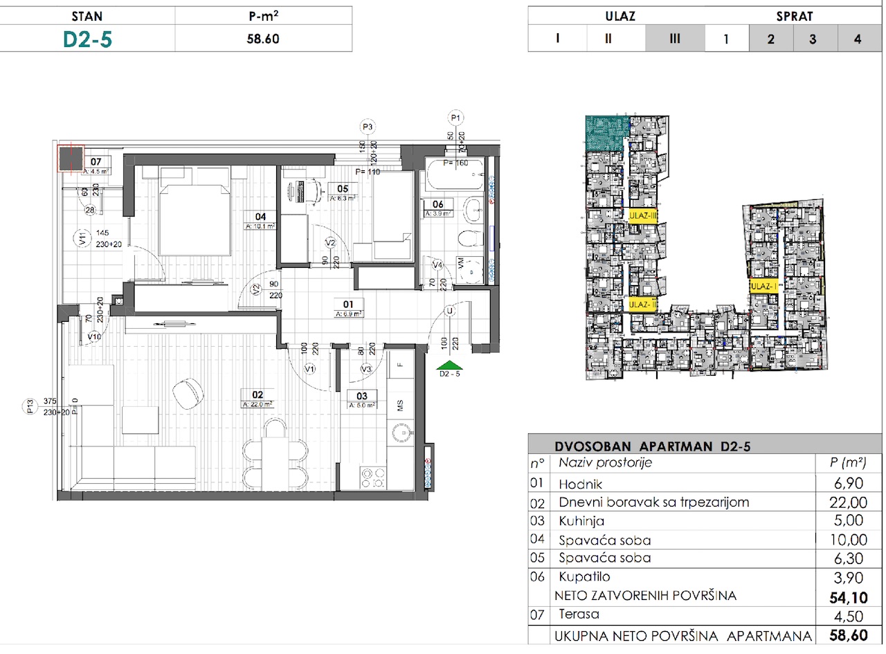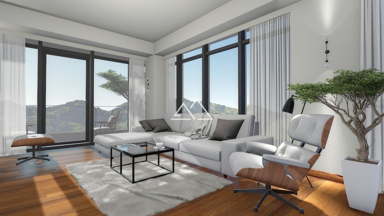 Квартира (D2-5) расположена на 2 этаже (3 русский) и продается в чистовой отделке с установленной сантехникой в ванной комнате. Квартира состоит из холла, из которого с одной стороны расположена зона для отдыха- гостиная, совмещенная с кухней и столовой зоной и с другой стороны от холла расположена спальная зона, состоящая из двух спален с выходом на террасу и ванной комнаты.