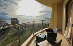 Квартира расположена на втором этаже комплекса, что, в сочетании с расположением на возвышенности, обеспечивает прекрасный панорамный вид на море.