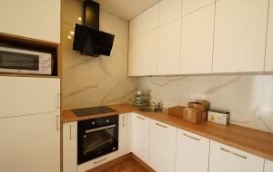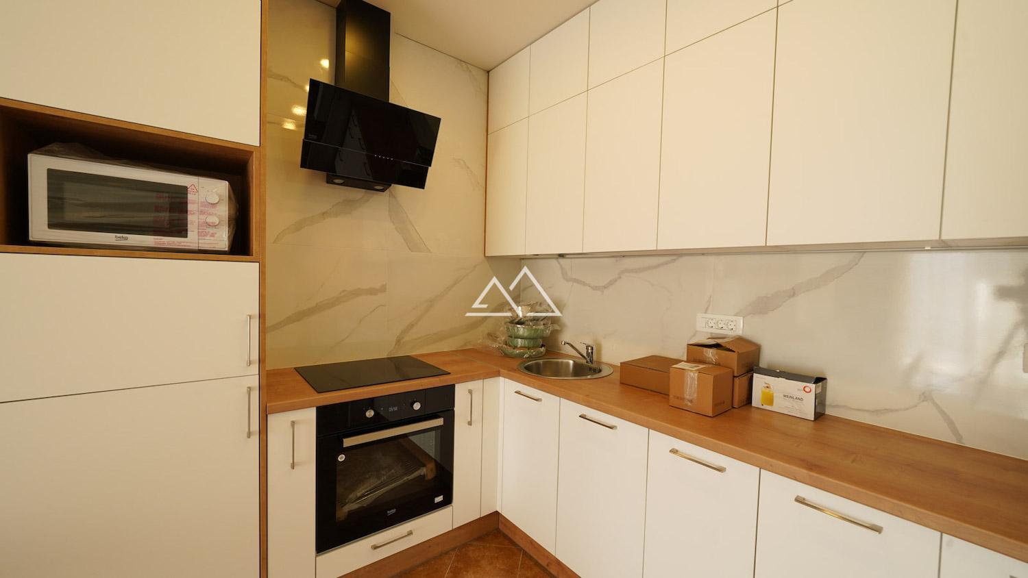 Квартира состоит из просторной гостиной, совмещенной с кухней и столовой зоной, ванной комнаты и большой террасы, с которой открывается потрясающий вид на море.