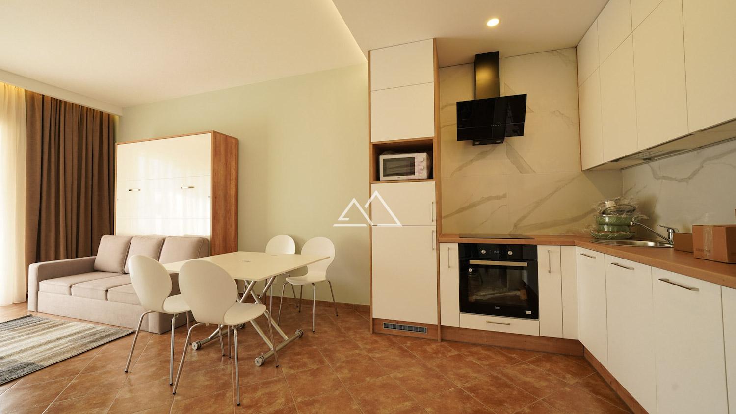 Просторные апартаменты-студио находятся в жилом комплексе премиум класса в эксклюзивной зоне в поселке Бечичи – рядом с пляжем. Квартира полностью меблирована и готова для проживания.