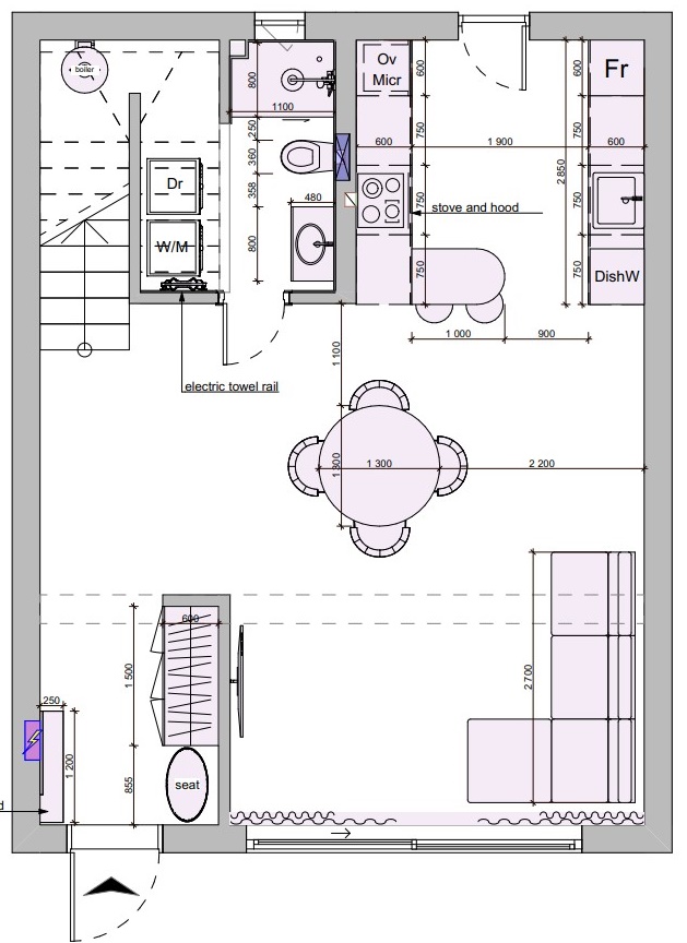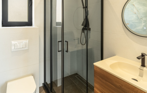Электрика, канализация, вода, бойлеры в санузлах, кондиционеры в гостиной и хозяйской спальне, теплый пол в санузлах и на кухне