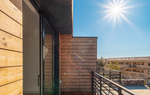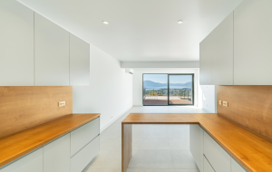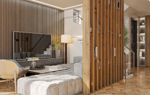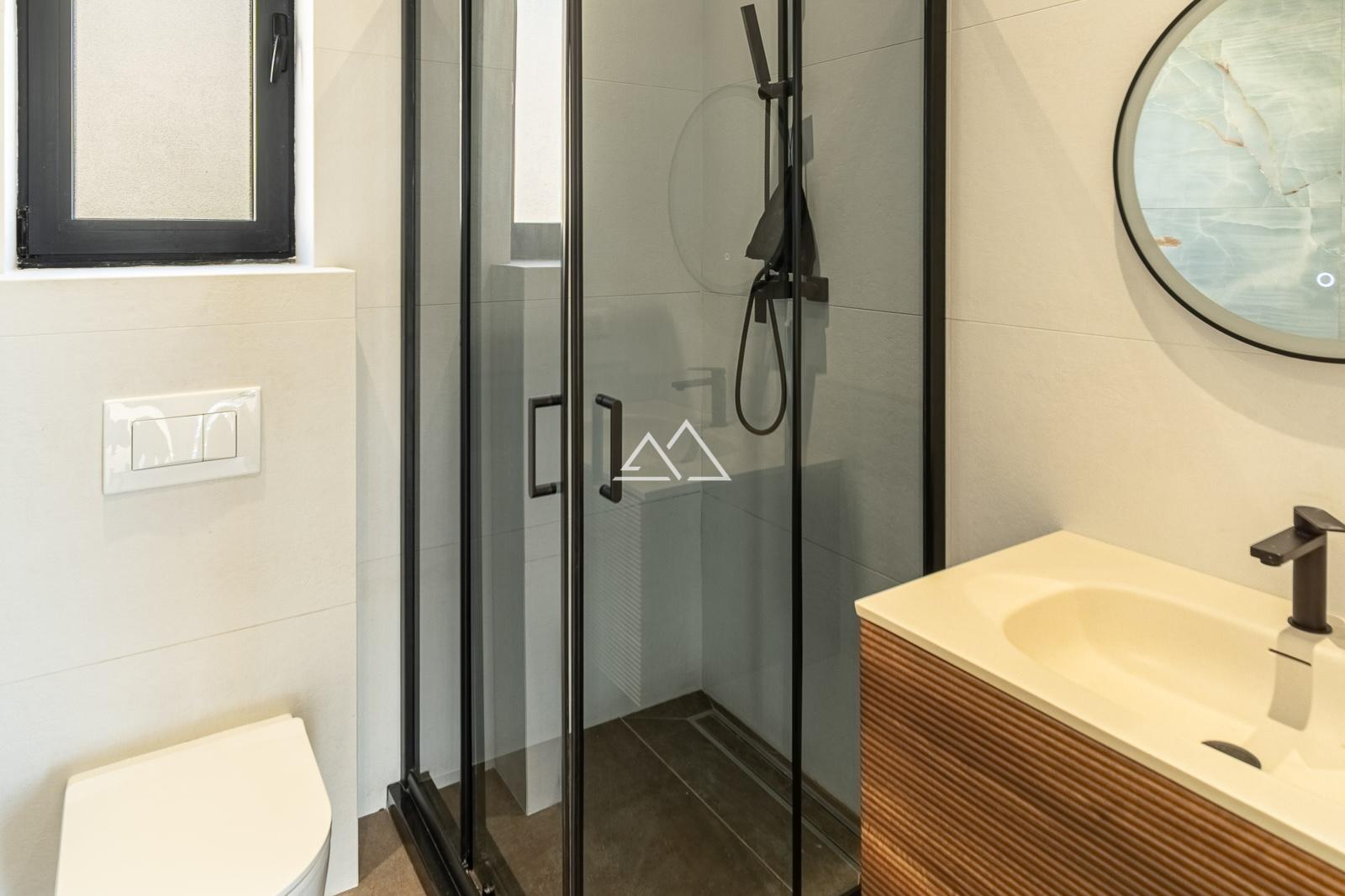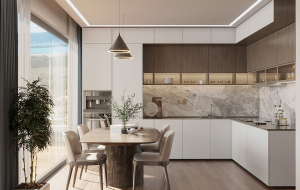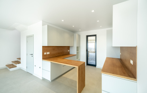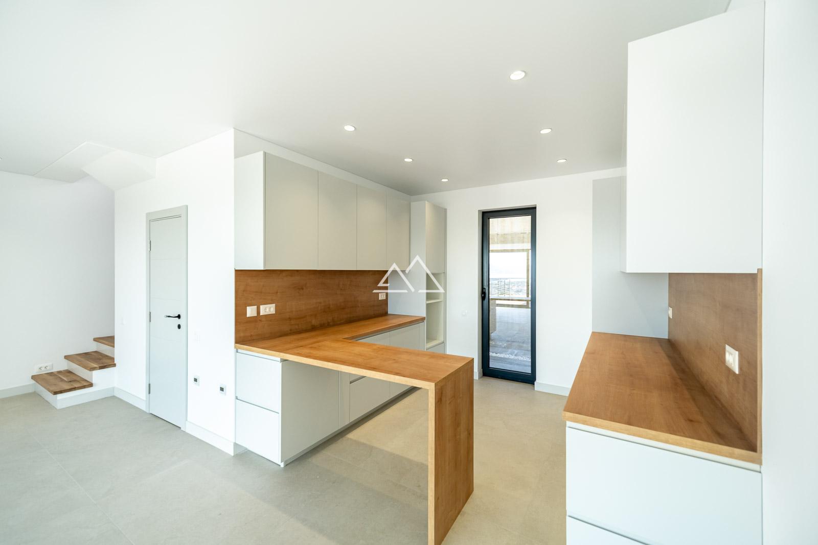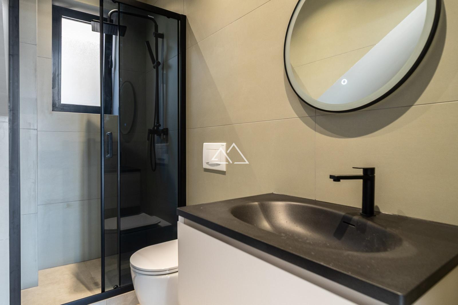 Двухэтажный таунхаус построен в стиле модерн площадью 120 м2 и с участком 200 м2. Таунхаус включает в себя гостиную с кухней и столовой зоной, 3 спальни, две ванные комнаты, две террасы и гараж.