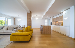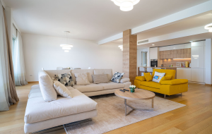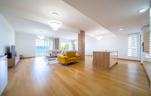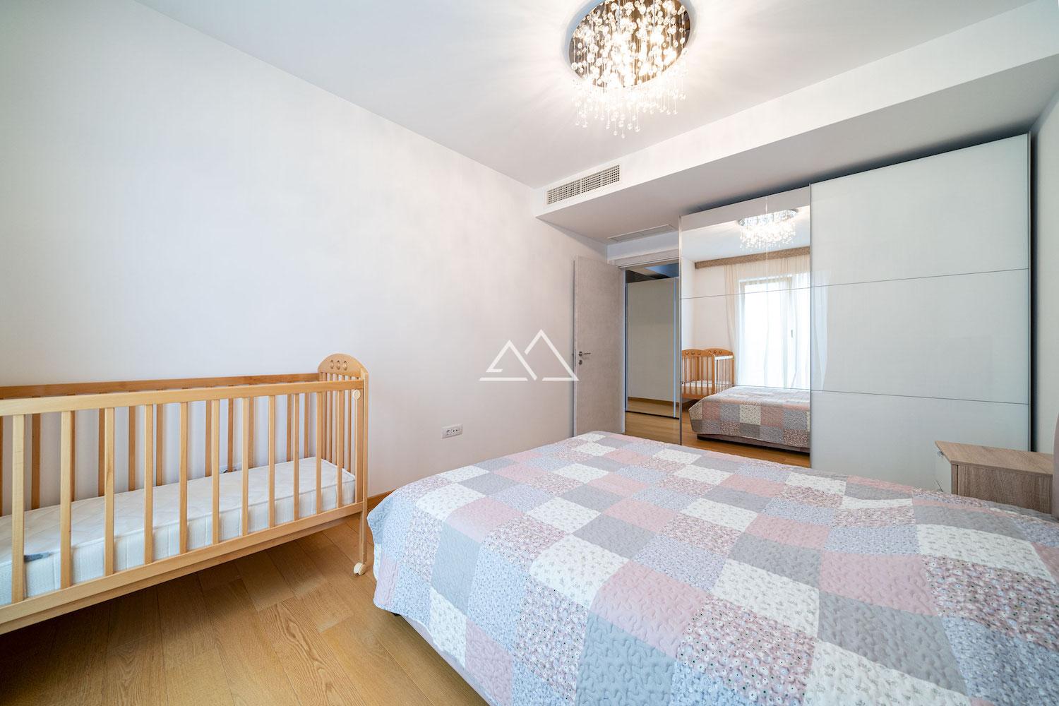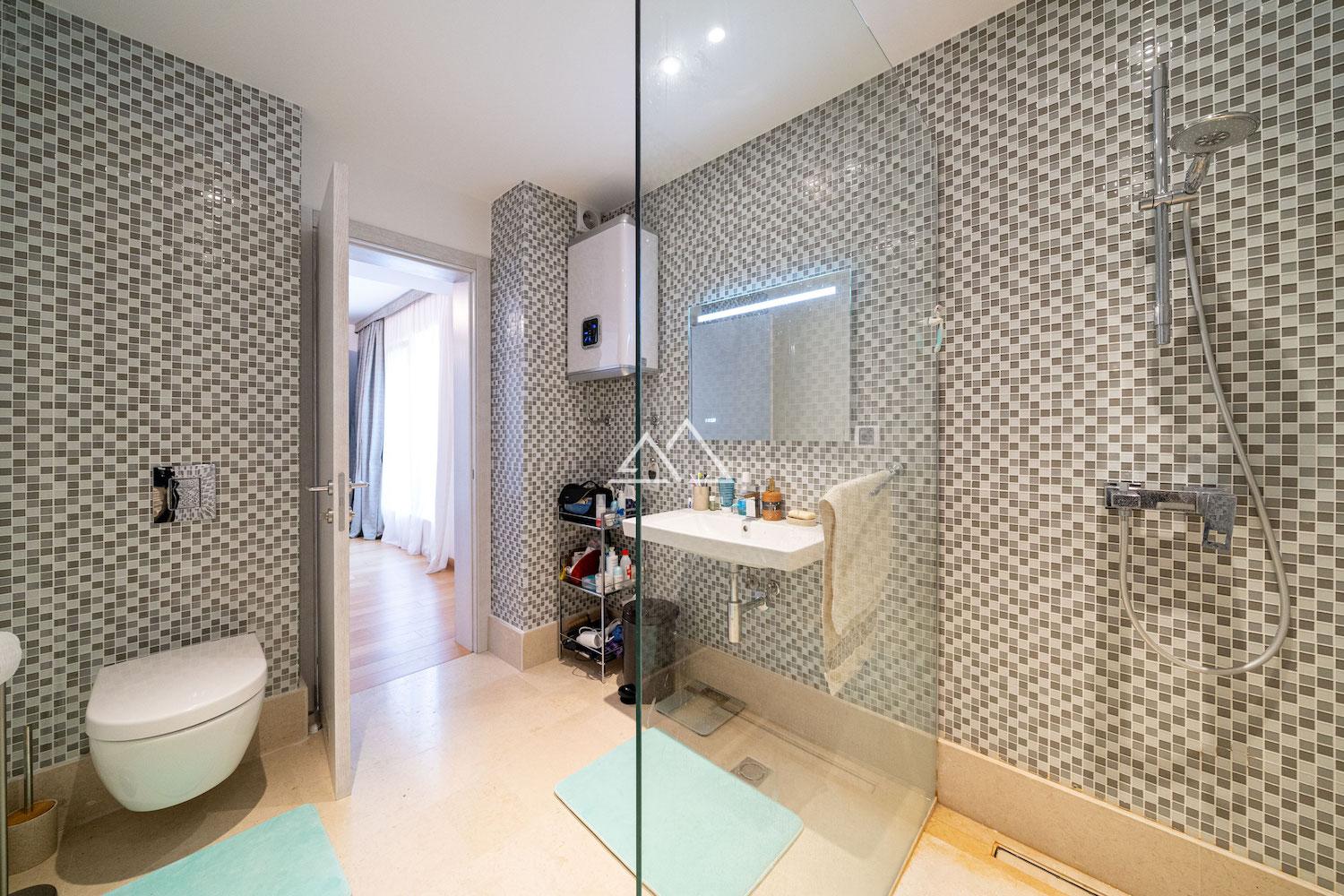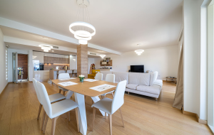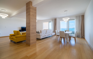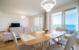 Квартира площадью 171 м2 включает в себя гостиную с кухней и столовой зоной, три спальни, коридор, три ванные комнаты и террасу с панорамным видом на море. Квартира полностью меблирована итальянской и немецкой мебелью из Euro casa, сделанной под заказ и укомплектована бытовой техникой. Кухня фирмы Nolte.