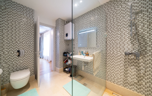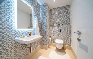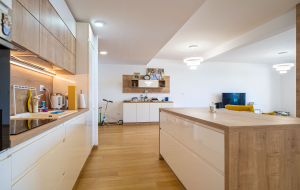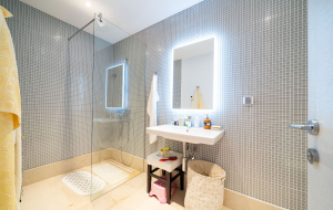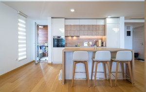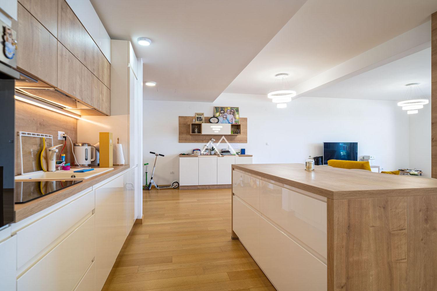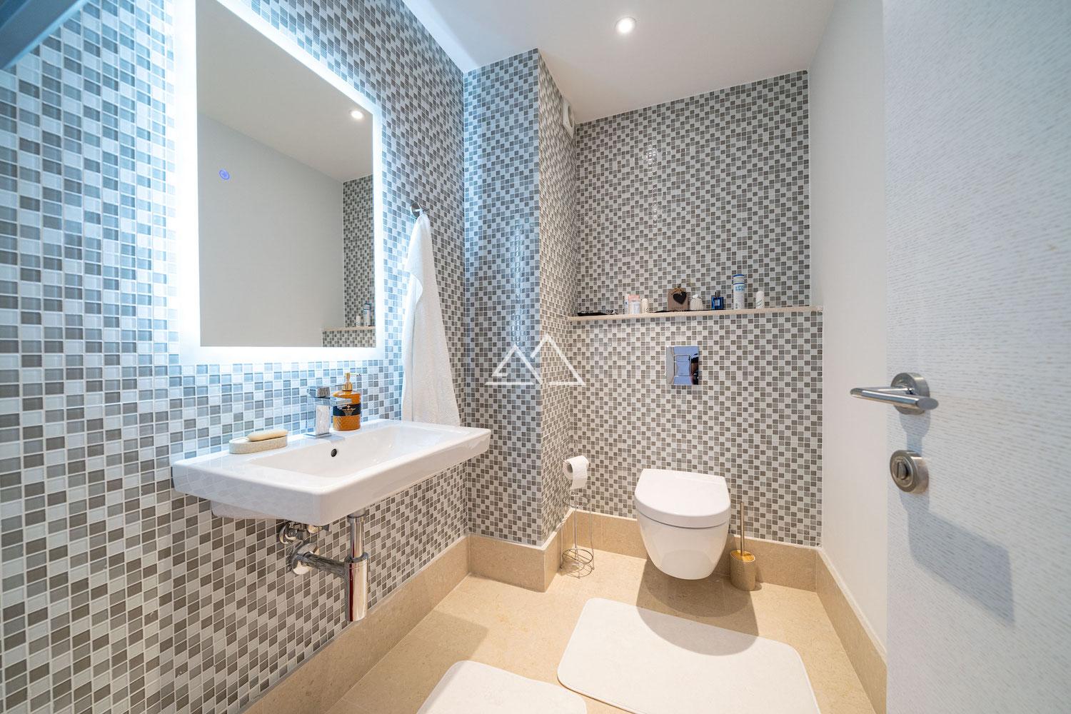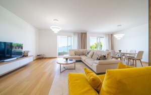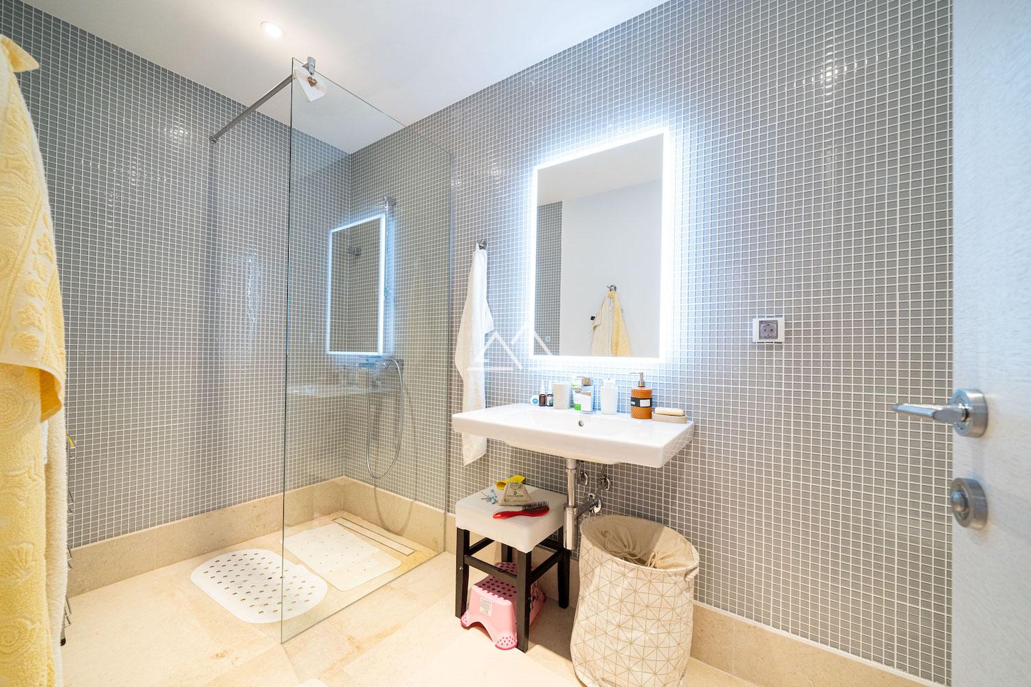 Квартира площадью 171 м2 включает в себя гостиную с кухней и столовой зоной, три спальни, коридор, три ванные комнаты и террасу с панорамным видом на море. Квартира полностью меблирована итальянской и немецкой мебелью из Euro casa, сделанной под заказ и укомплектована бытовой техникой. Кухня фирмы Nolte.