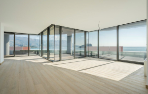 Апартаменты площадью 189 м2 состоят из просторной светлой гостиной открытой планировки с потрясающим видом на море, кухни, трех спален, трех ванных комнат, гостевого туалета и террасы с зелеными насаждениями. Панорамные окна в пол создают уникальность интерьера и обеспечивают полное естественное освещение всего пространства.