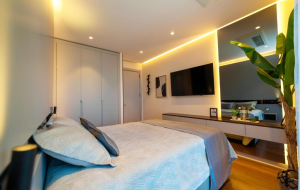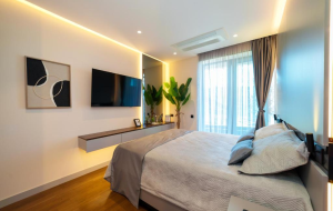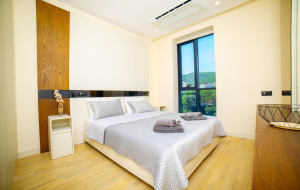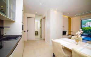 Квартира расположена на 4 этаже (3 местный) и состоит из коридора, ванной комнаты, гостиной, совмещенной с кухней с выходом на зеленую террасу, двух спален, каждая из которых имеет собственную террасу с видом на море. Квартира продается с ремонтом под ключ. Возможен ремонт по индивидуальному дизайну. Внутренняя отделка выполняется по дизайн проекту из высококачественных материалов: индивидуально отобранный мрамор, дизайнерские решения в дереве и камне. Установлена система "Умный дом" от Legrand.