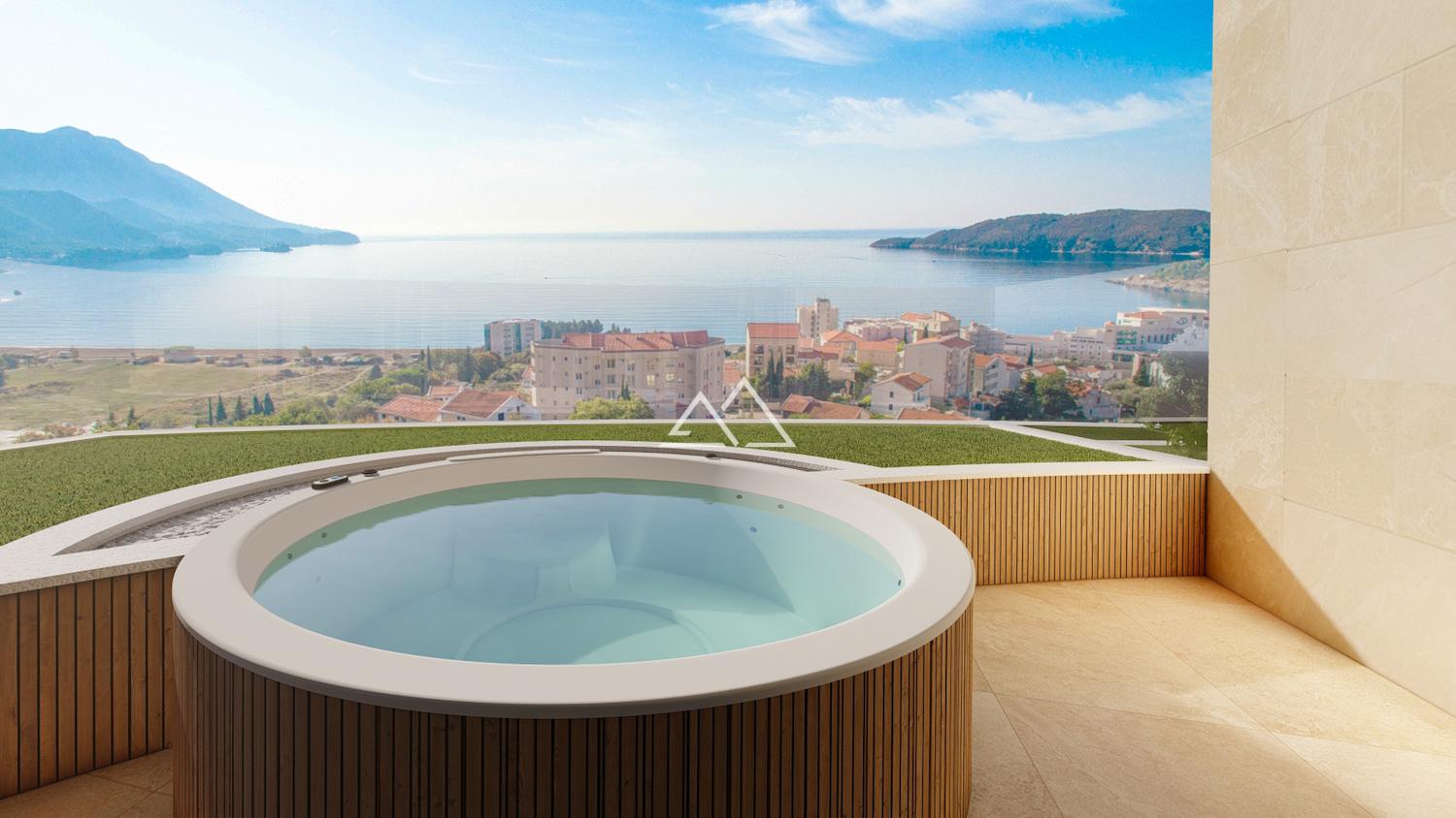 Квартира с двумя спальнями в новом комплексе с бассейном и SPA в Бечичи, в 400 м от моря. Этот уникальный жилой комплекс отличается потрясающими видами на море, Святой Стефан и Будванскую Ривьеру.