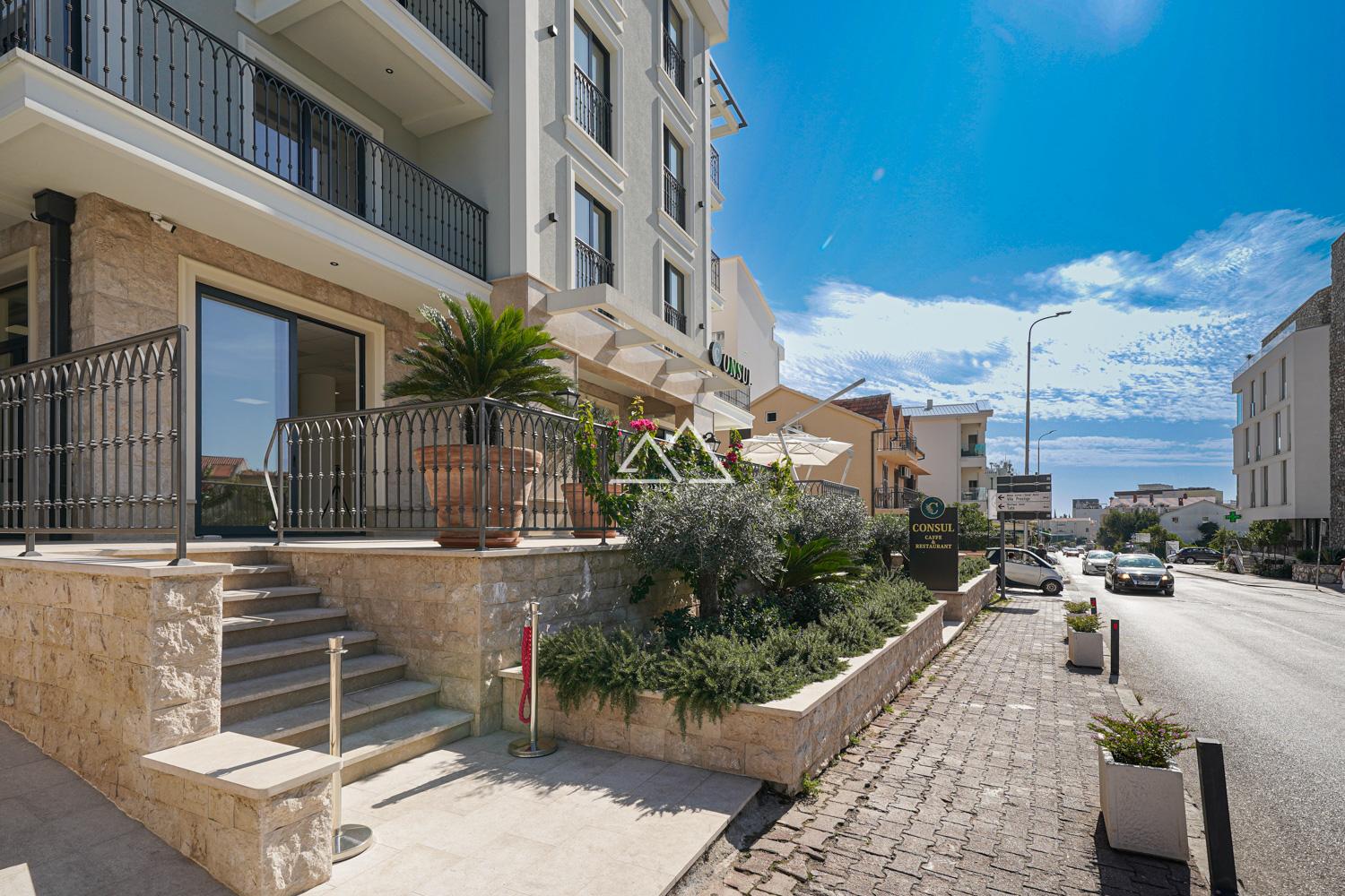 Здание расположено на оживленной улице – второй по значению транспортной артерии Будвы, с большим пешеходным и автомобильным трафиком в течение всего года.