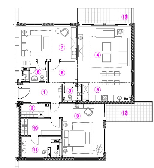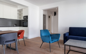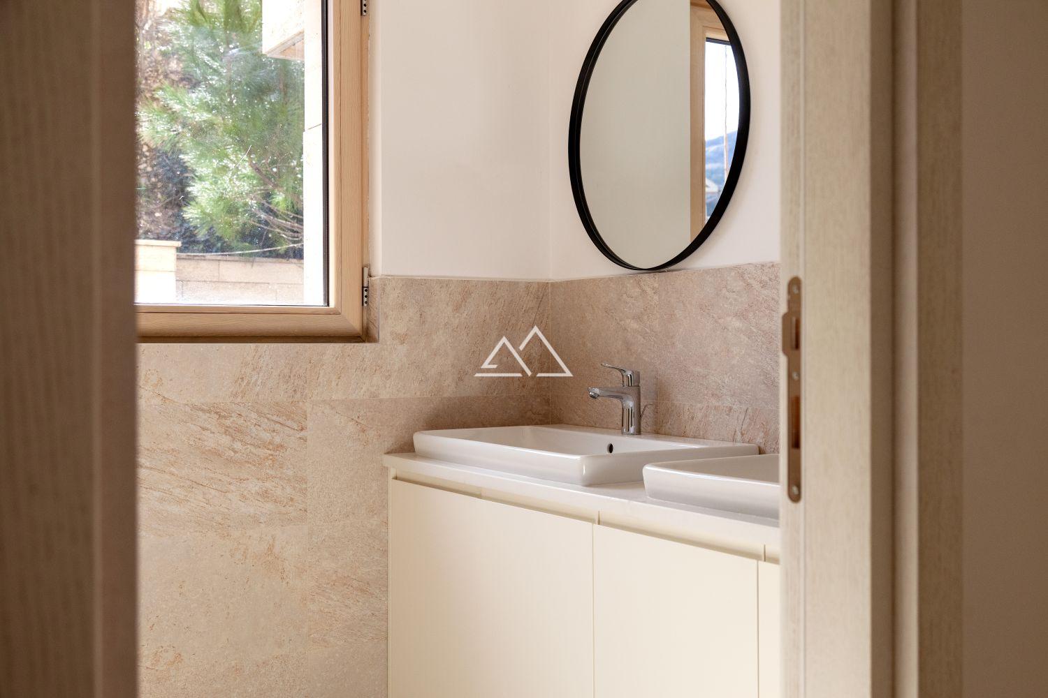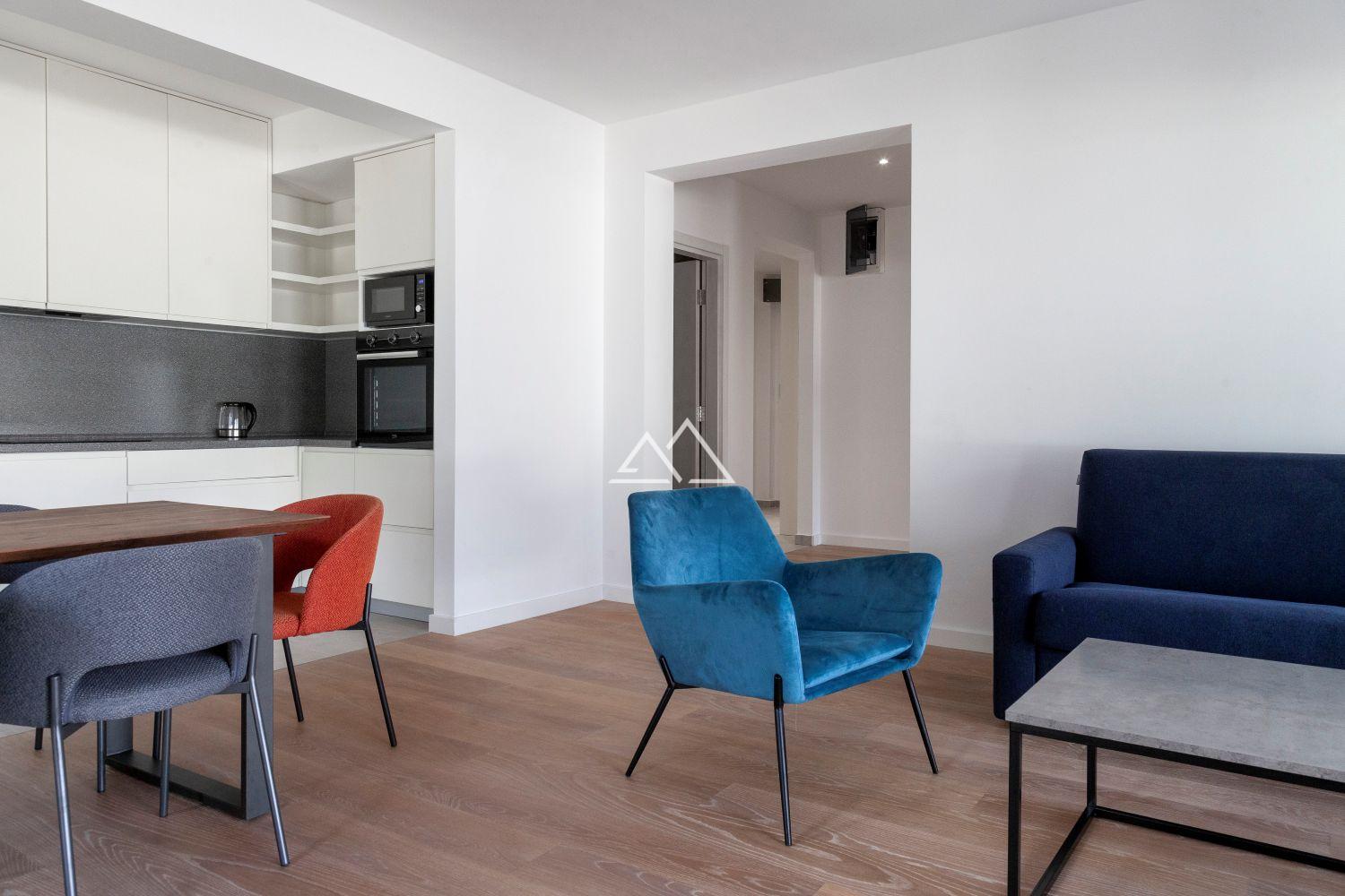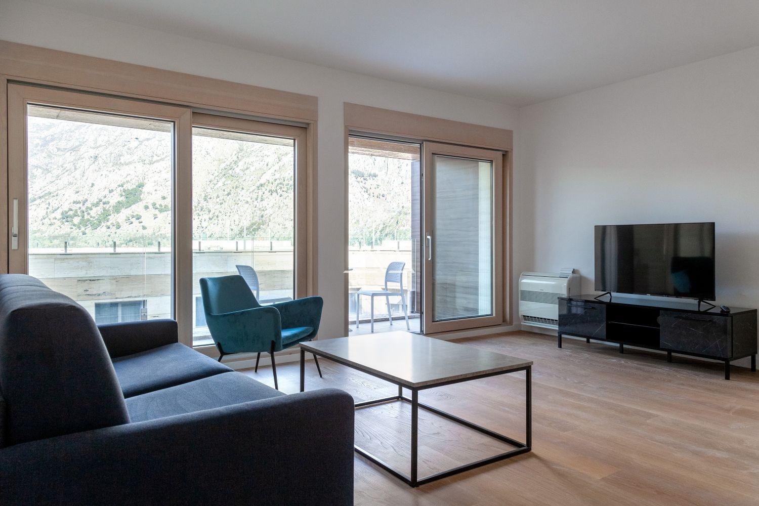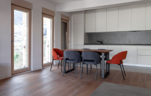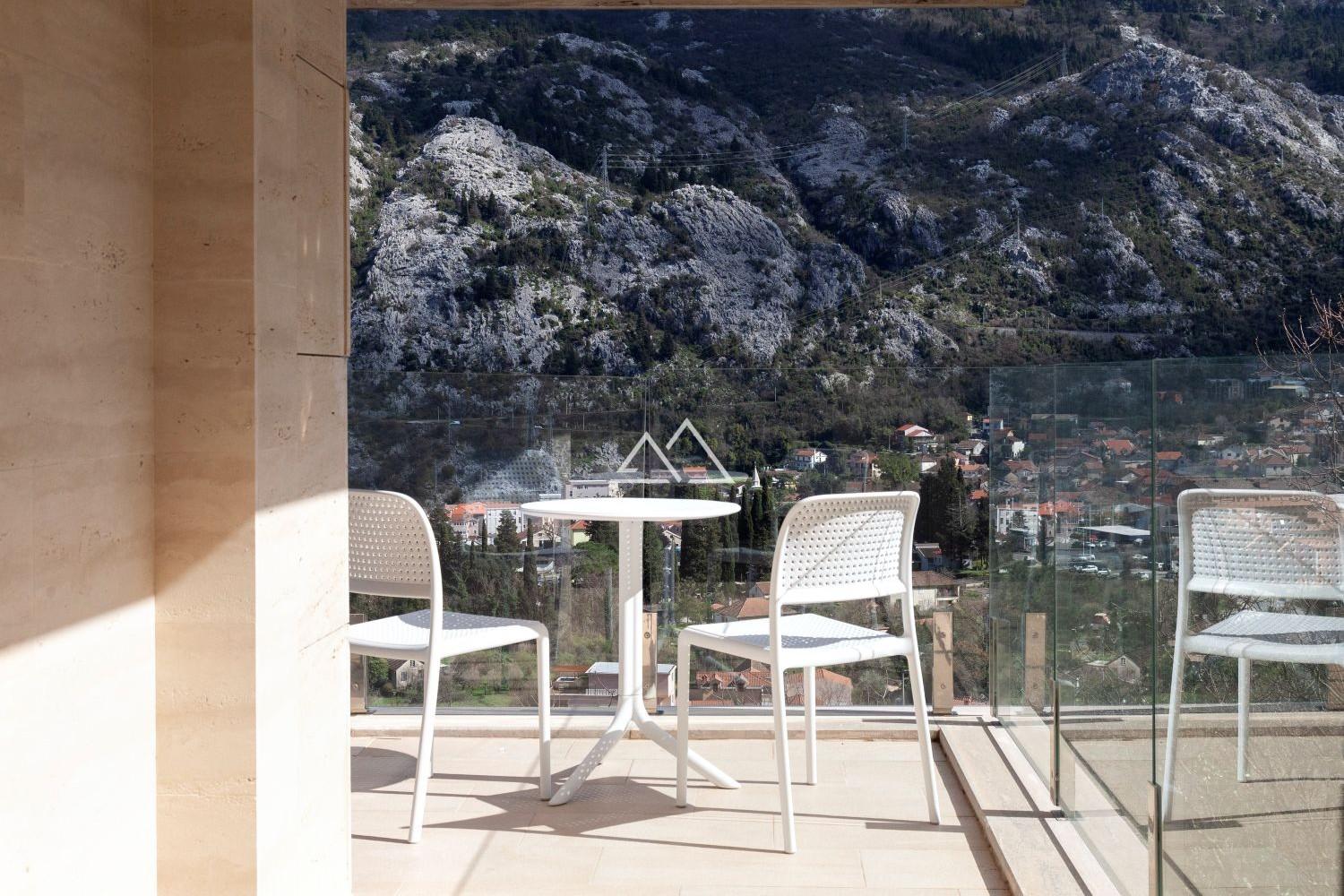 Апартаменты с 2 спальнями, площадью 136 м2, в новом современном жилом комплексе на берегу Которского залива. В апартаментах есть гостиная с кухней, 2 спальни, 2 ванные комнаты, 1 гостевой сан узел, прихожая, гардеробная, постирочная и 2 террасы. Много света, панорамные окна. Апартаменты продаются уже с отделкой, используется паркет из ценных пород дерева, керамогранит Porcelanosa и сантехника Villeroy & Boch и Noken. Квартира полностью меблирована и готова к проживанию.
