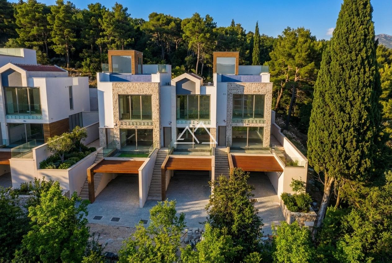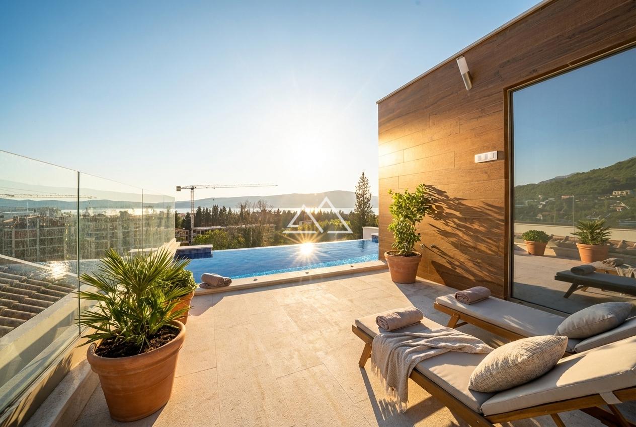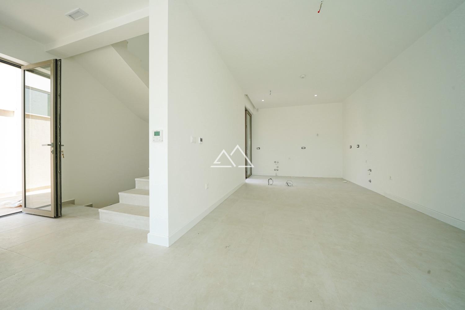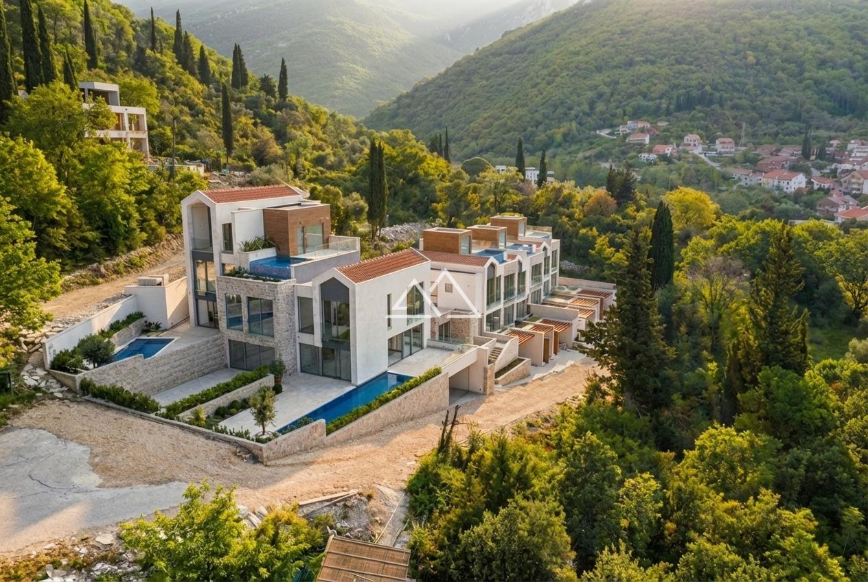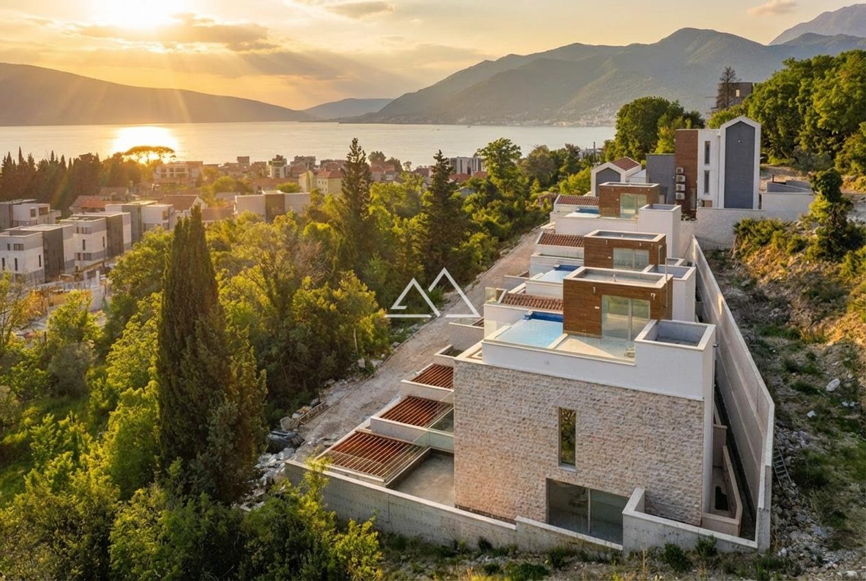 Готовый таунхаус (K-1) с 2 спальнями, бассейном и гаражом на 2 автомобиля в новом комплексе премиум-класса в Тивате. Комплекс расположен на небольшом возвышении в окружении зелени рядом со всей городской инфраструктурой. Расстояние до моря составляет 400 м. Из панорамных окон открываются потрясающие виды на море, горы, Тиват и Porto-Montenegro. Отличительной чертой проекта является наличие собственного гаража.