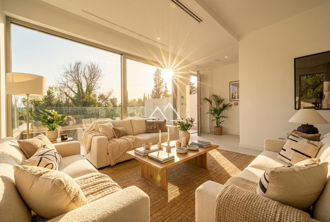 Таунхаус продается в чистовой отделке премиум класса с использованием натуральных материалов, таких как природный камень и дерево, укомплектованы Vileroy Boch сантехникой и системой климатизации Daikin. Установлены подогрев пола, система «умный дом».