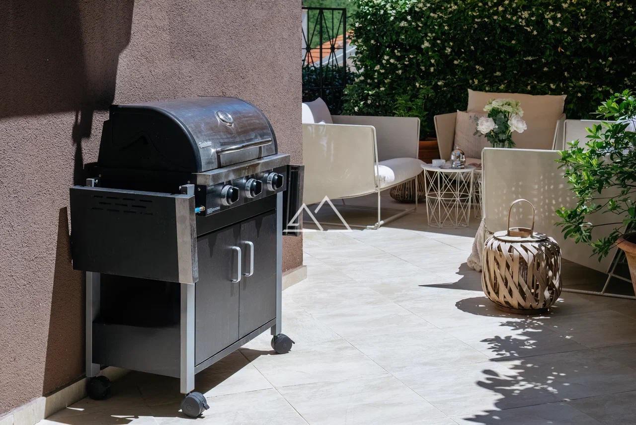 Квартира полностью меблирована и готова для жизни. Квартира состоит из гостиной, двух спален, ванной комнаты и дворика с зоной для барбекю.