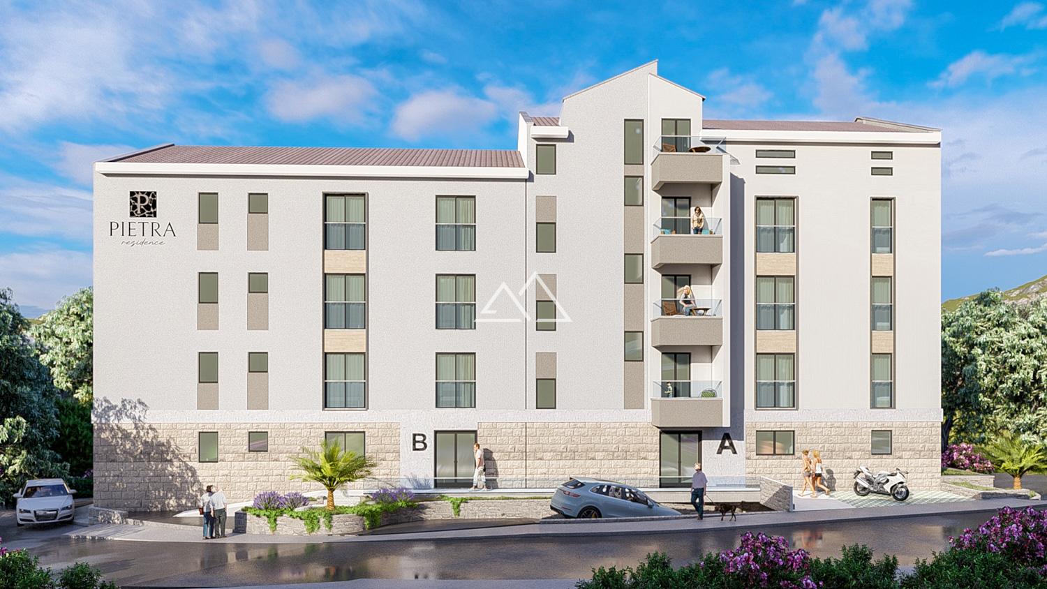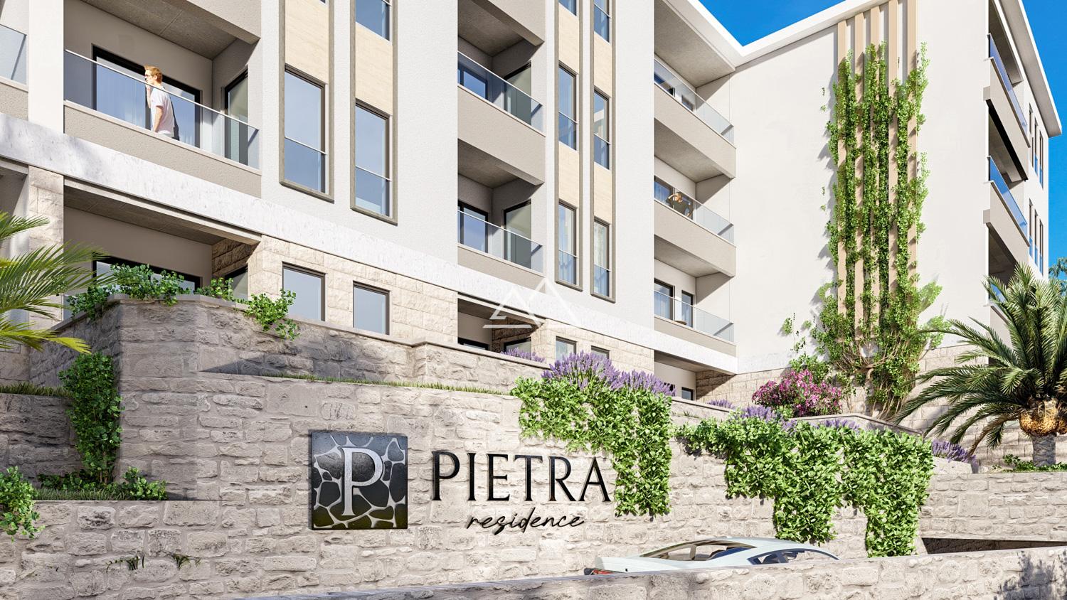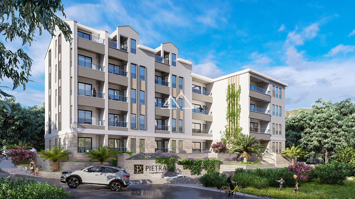 Апартаменты с 2 спальнями в новом жилом комплексе „PIETRA RESIDENCE“ в тихом районе Будвы- Подкошлюн, всего в 4 минутах езды от пляжа и набережной.