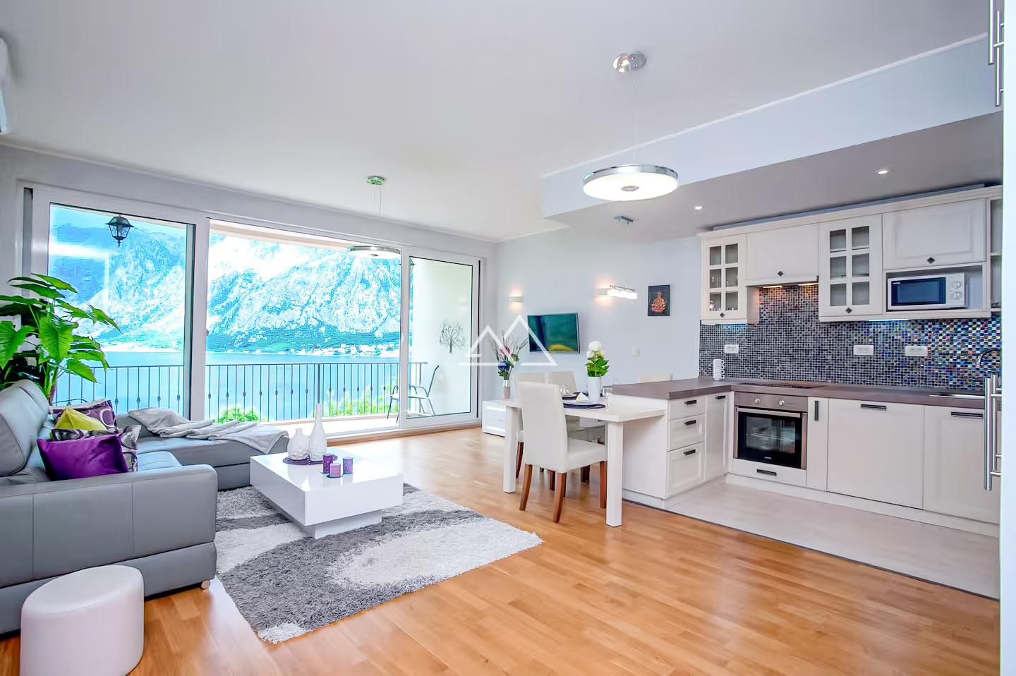 Современные меблированные апартаменты с 3 спальнями в комплексе с бассейном в поселке Прчань в Бока-Которском заливе. Из окон открываются панорамные виды на море и горы. Апартаменты идеально подойдут для большой семьи. Апартаменты состоят из гостиной, совмещенной с кухней с выходом на террасу, 3 спален и 2 ванных комнат. Апартаменты готовы для проживания или сдачи в аренду. Подключен высокоскоростной интернет.