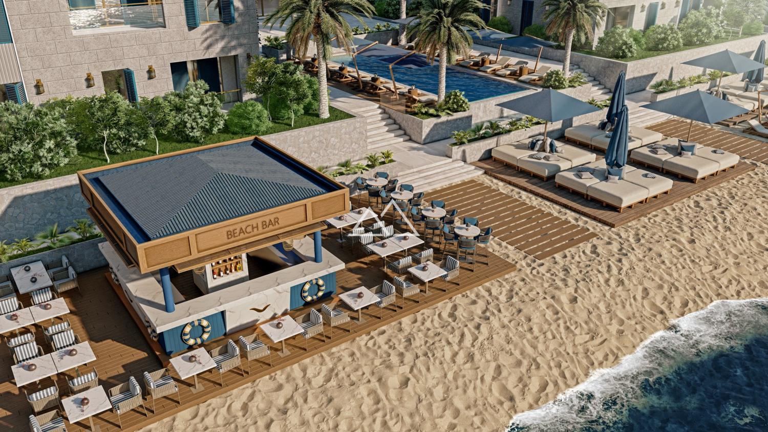- песчаный пляж и пляжный бар;