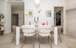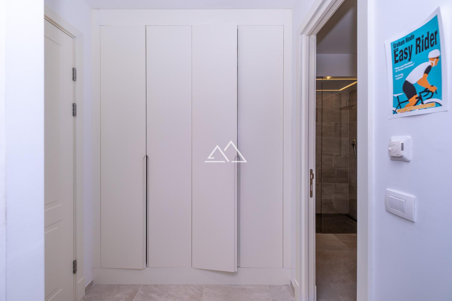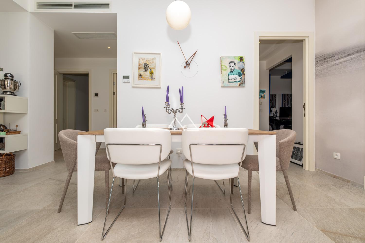 Апартаменты общей площадью 152 м2 состоят из просторной гостиной с выходом на террасу (40 м2) , гостевого санузла, бытовой комнаты, кухни и двух спален, каждая из которых имеет собственную ванную комнату.
