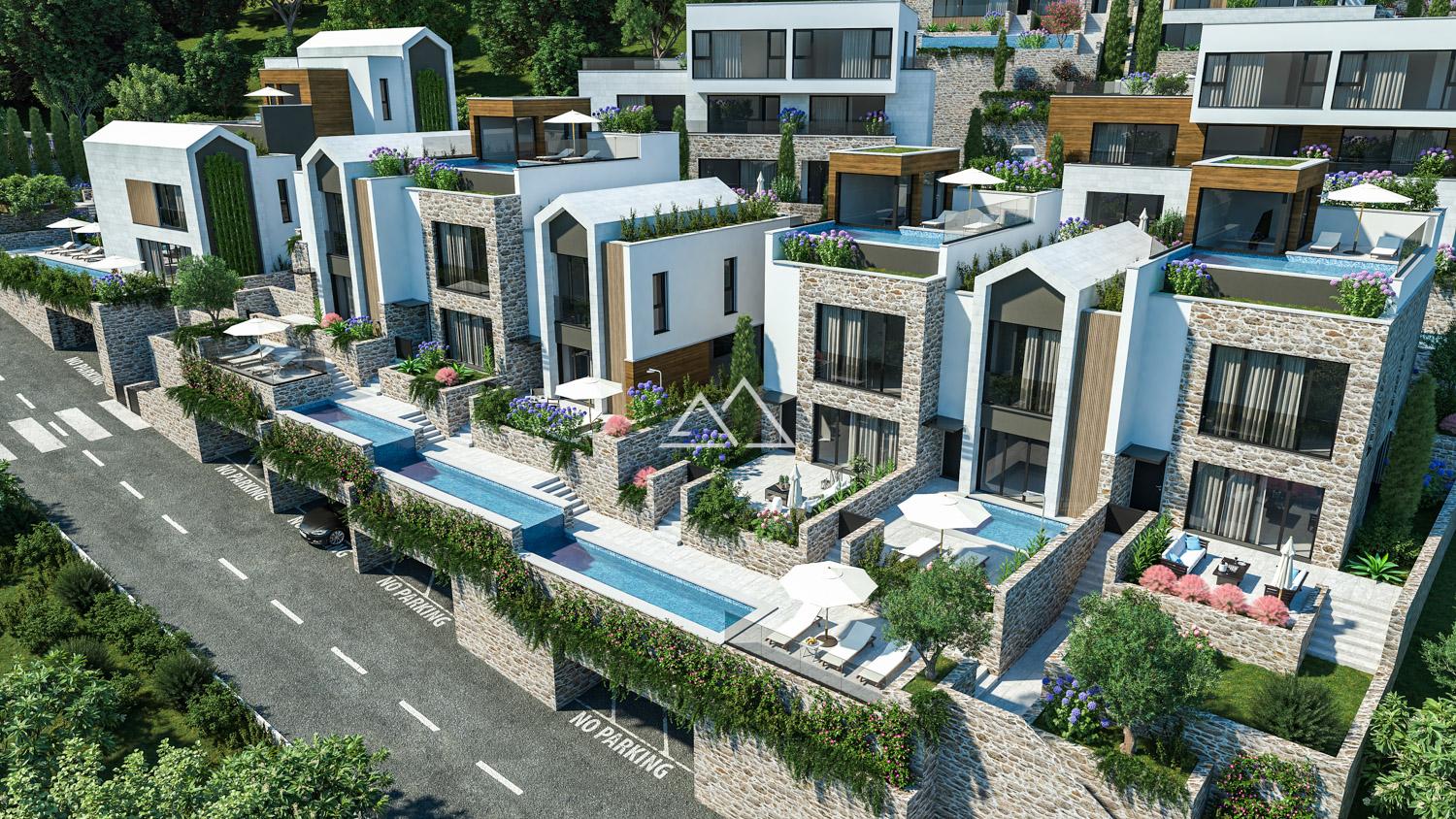 Комплекс находится на небольшом возвышении, в окружении зелени, всего в 400 метрах от моря и в непосредственной близости от всей городской инфраструктуры. В 2 км расположен знаменитый Porto Montenegro – центр яхтенной жизни и элитного отдыха.