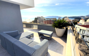 Эксклюзивные апартаменты (140 м2) с 3 спальнями, просторной террасой 106 м² и собственным бассейном расположены в одном из самых перспективных районов Тивата. Каждая спальня имеет собственную ванную комнату и гардеробную.