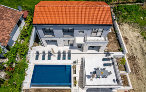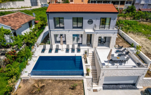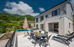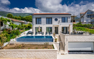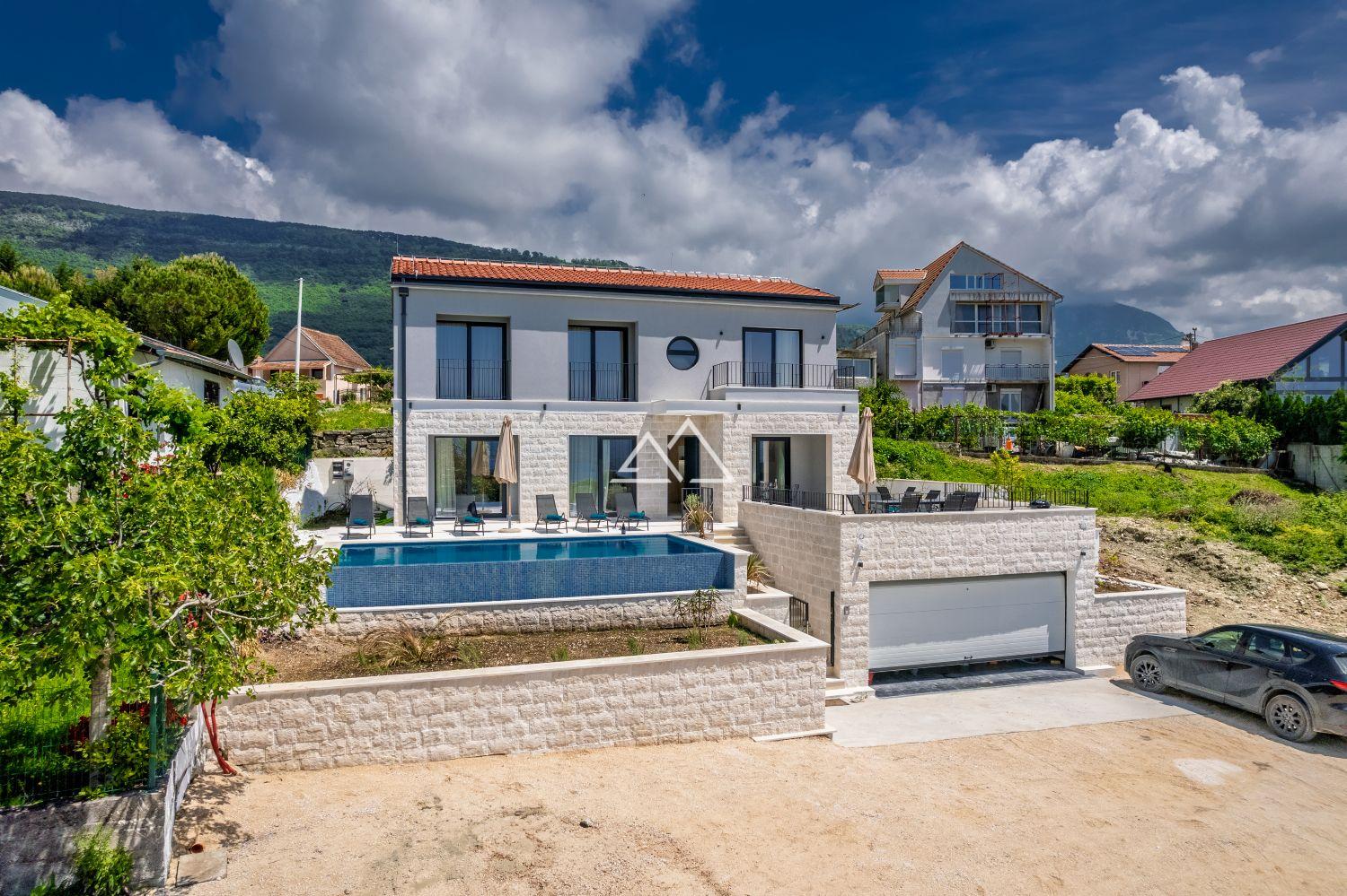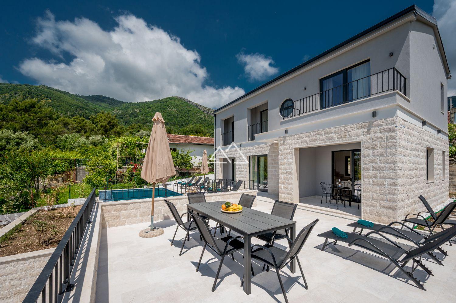 Современная двухэтажная вилла с бассейном, гаражом и большим участком в тихом районе Тивата — Мрчевац. Всего 5 минут на машине до аэропорта и 10 минут до центра города и Porto Montenegro.