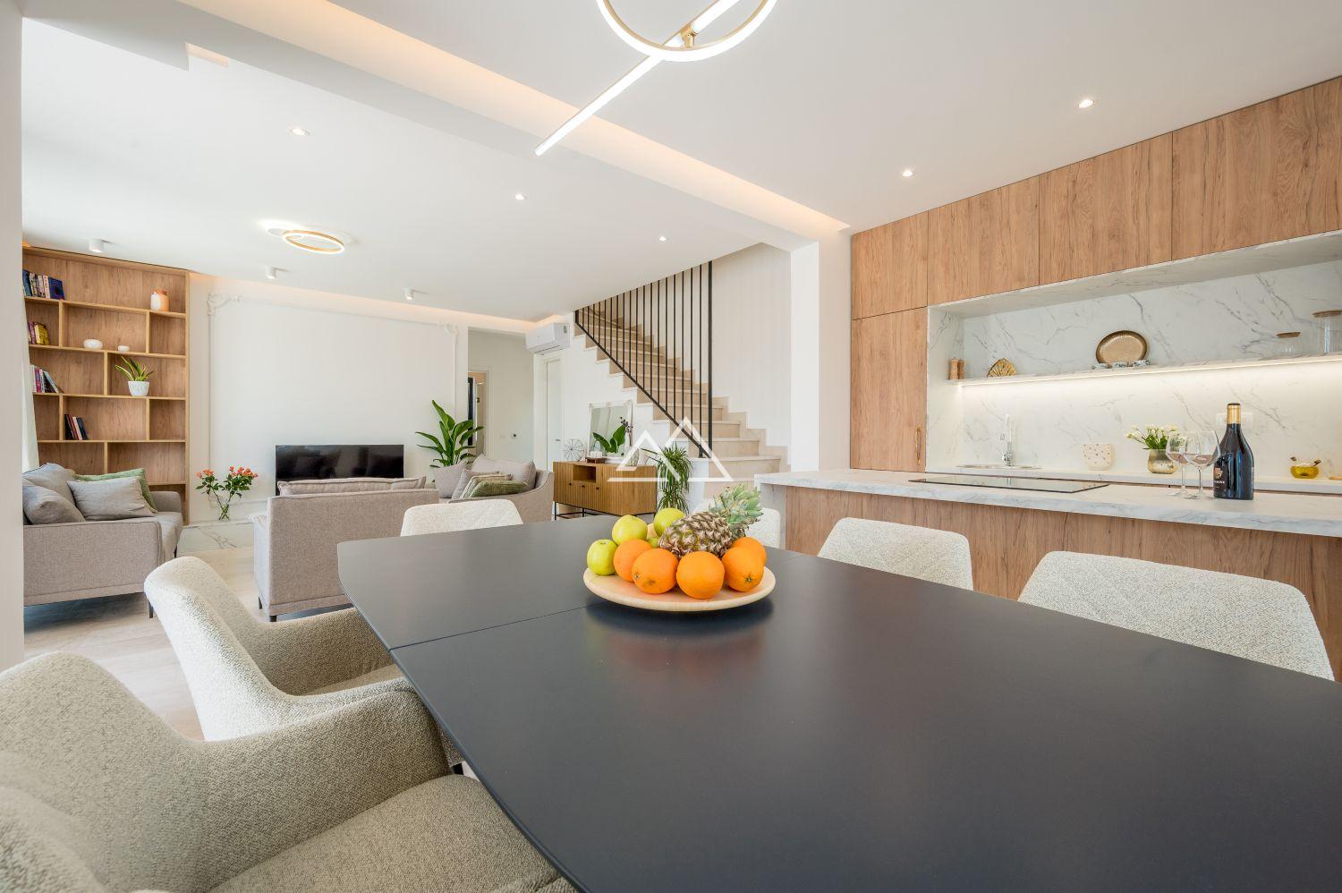 В доме есть просторная гостиная с выходом на террасу и панорамным видом на море, современная кухня, столовая и кладовая, теплые полы и центральный бойлер. Установлены все необходимые инженерные системы, включая видеонаблюдение и автоматические ворота.