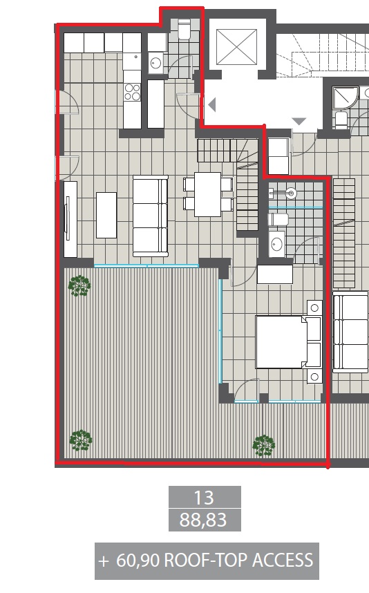 • Доступ к эксклюзивному участку крыши площадью 60,90 м²