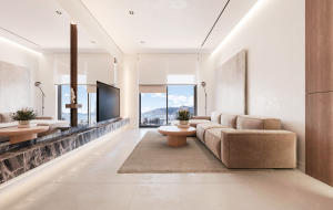 Пентхаус представляет собой идеальное сочетание городской жизни и уединения в окружении природы. Пространство продумано до мелочей и выполнено по системе «ключ в руки»: с дизайнерской мебелью, бытовой техникой и возможностью индивидуальной отделки.