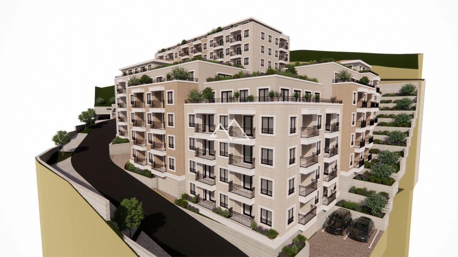 Современный жилой комплекс в тихом и зелёном районе Будвы Бабин До с живописными горными пейзажами и видом на море. Уникальное расположение в верхней части города обеспечивает не только уединение и тишину, но и панорамные виды на побережье. Комплекс будет строиться поэтапно, в три очереди.