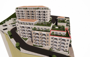 Представляем просторный пентхаус, расположенный на верхнем (5-м) этаже нового жилого комплекса в живописном районе Будвы — Бабин До. Это тихая и зелёная часть города с великолепными видами на Адриатическое море и горные ландшафты.