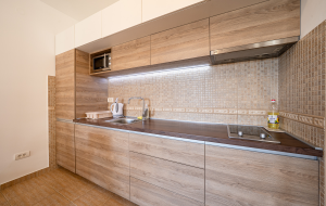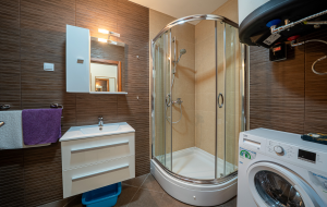 • Функциональная планировка: жилая зона с кухней открытого типа, ванная комната с душевой кабиной