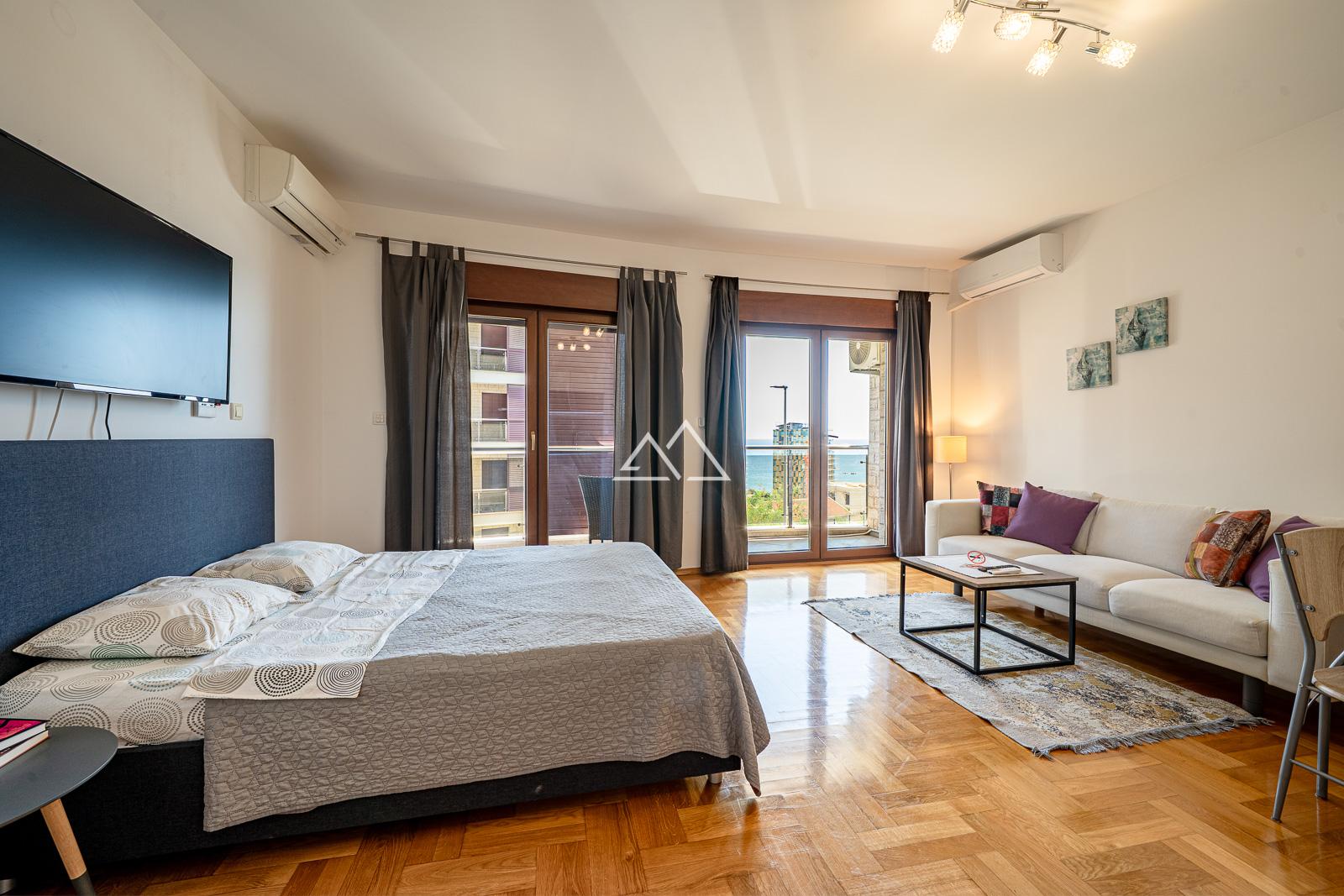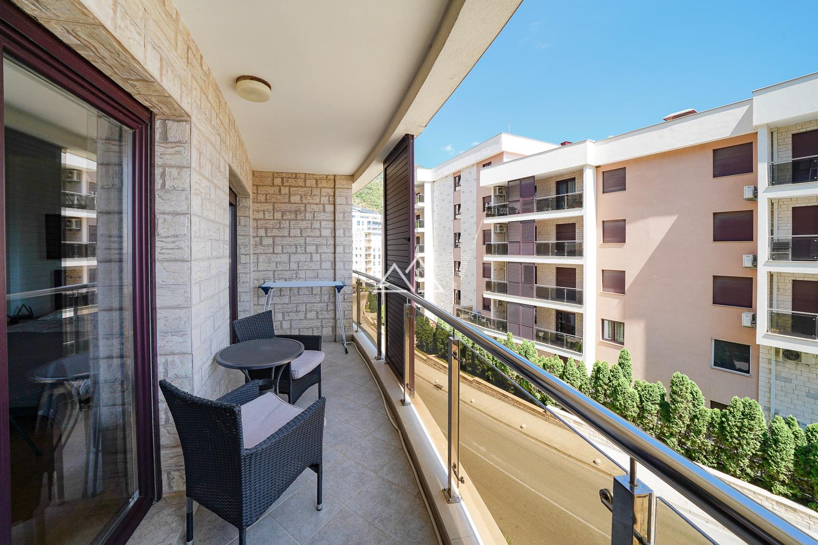 Предлагается к продаже уютная студия с полной меблировкой и бытовой техникой, расположенная на втором этаже современного жилого комплекса в живописном курортном поселке Бечичи, всего в нескольких минутах ходьбы от пляжа.