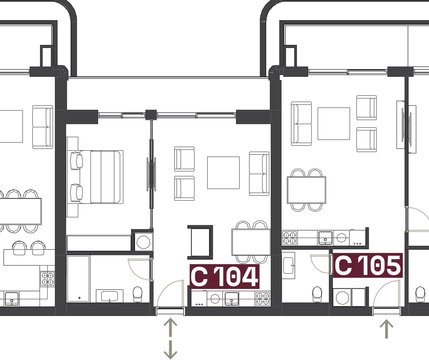 Апартаменты продаются в чистовой отделке со встроенной сантехникой и состоят из просторной гостиной, совмещенной с кухней с выходом на террасу, 1 спальни и одной ванной комнаты.