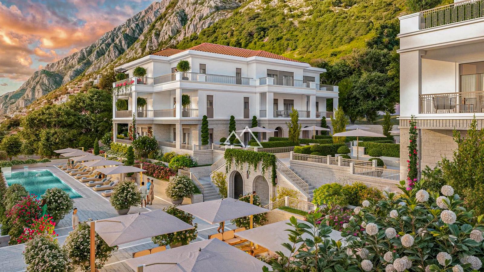 Современный жилой комплекс, расположенный в 150 метрах от моря, в живописном поселке Доброта, Бока-Которская бухта.
