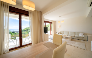 Эксклюзивный комплекс из 6 домов, утопающих в садах и оливковых рощах, сочетает современную архитектуру и природную гармонию. Квартира полностью меблирована итальянской мебелью, выполненной на заказ, и готова к проживанию. Из гостиной и террасы открывается панорамный вид на море и оливковые рощи.
