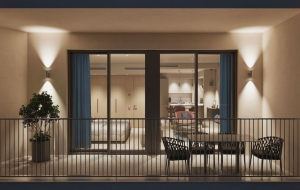 Спальню, просторную гостиную, объединённую с кухней и столовой зоной, ванную комнату, входную группу, террасу с видом на море, на которую можно выйти как из гостиной, так и из спальни.