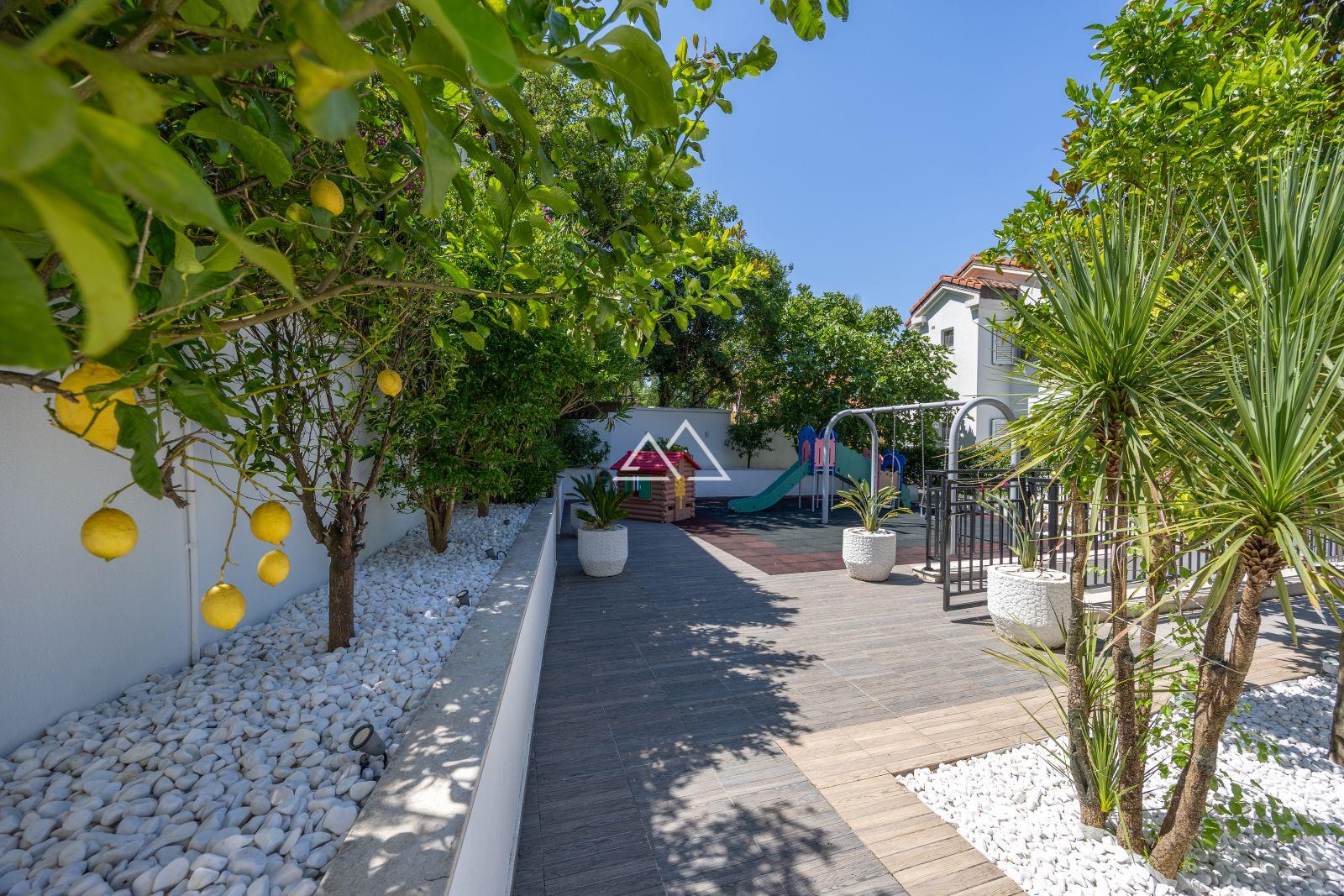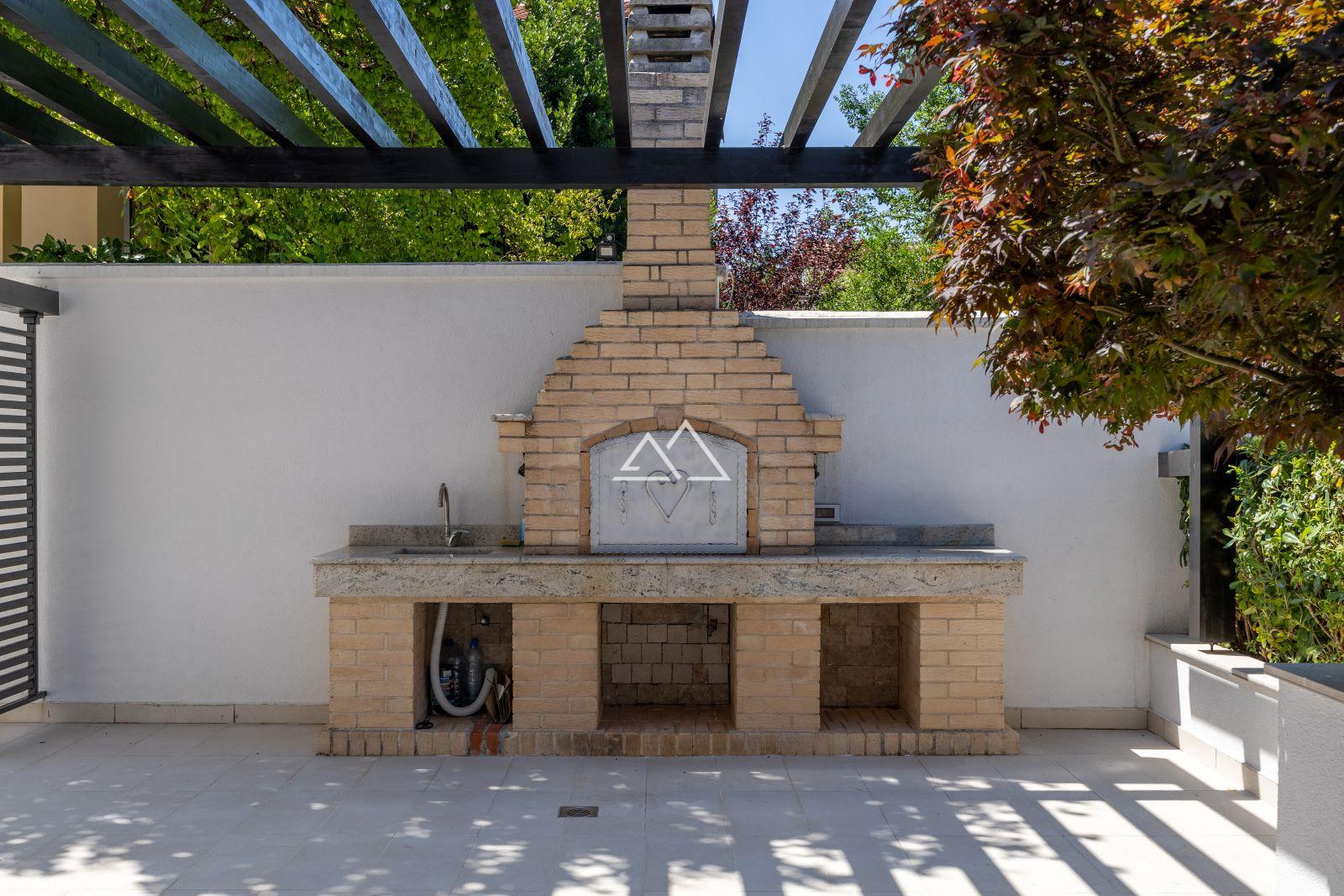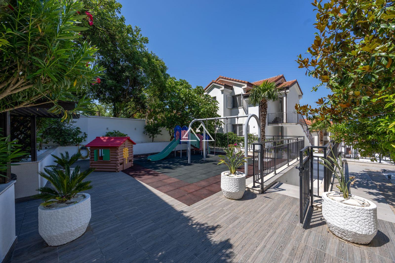 Объект входит в жилой комплекс из 6 отдельно стоящих домов и располагается на закрытой территории. Дом состоит из трёх отдельных квартир площадью по 88 м² каждая.
