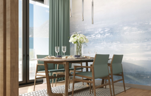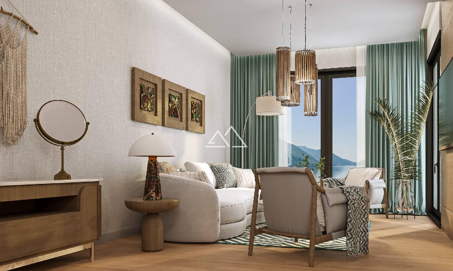Пентхаус Mediterranean расположен в новом эксклюзивном проекте на 1 линии MOVENPICK RESIDENCES TEUTA KOTOR BAY. Это один из 6 пентхаусов, каждый из которых имеет свой уникальный дизайн, стиль и название. Пентхаус занимает общую площадь 288,32 м². Он состоит из просторной гостиной, совмещённой с кухней и обеденной зоной, трёх спален, двух ванных комнат и гостевого туалета. В распоряжении владельцев два балкона, а также частная терраса площадью 110,10 м² с зелёной зоной (43,82 м²) и собственным бассейном (10,77 м²), откуда открываются захватывающие виды на море и побережье.