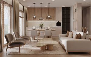 • Кухня-гостиная — просторная и светлая, с обеденной зоной и зоной отдыха