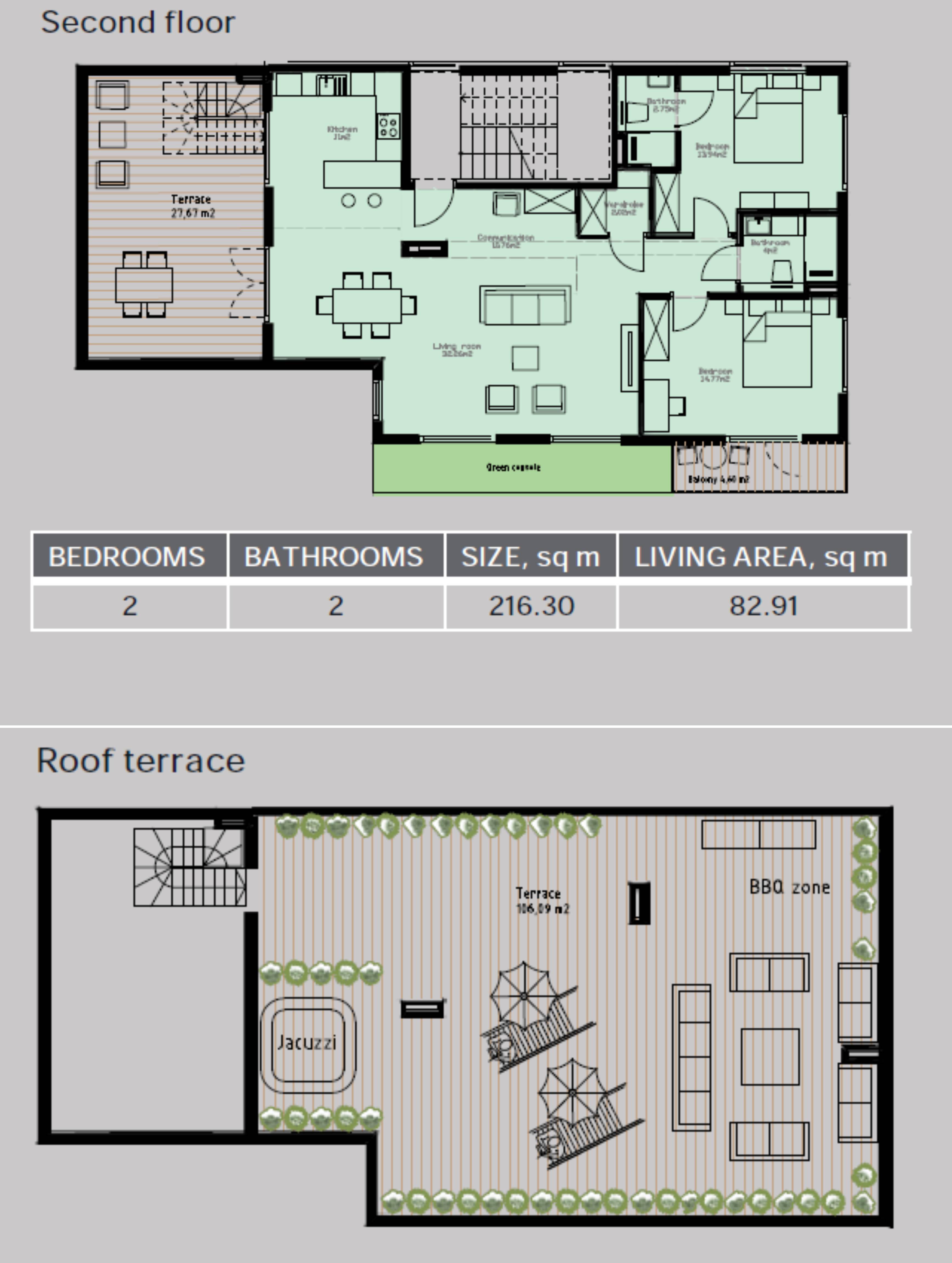 Современный пентхаус с двумя спальнями и просторной террасой в самом сердце Тивата, расположенный в новом жилом комплексе, всего через дорогу от зелёного парка и пляжей. Пентхаус сочетает функциональность и комфорт, а наличие собственной террасы на крыше создаёт дополнительное пространство для отдыха на свежем воздухе.