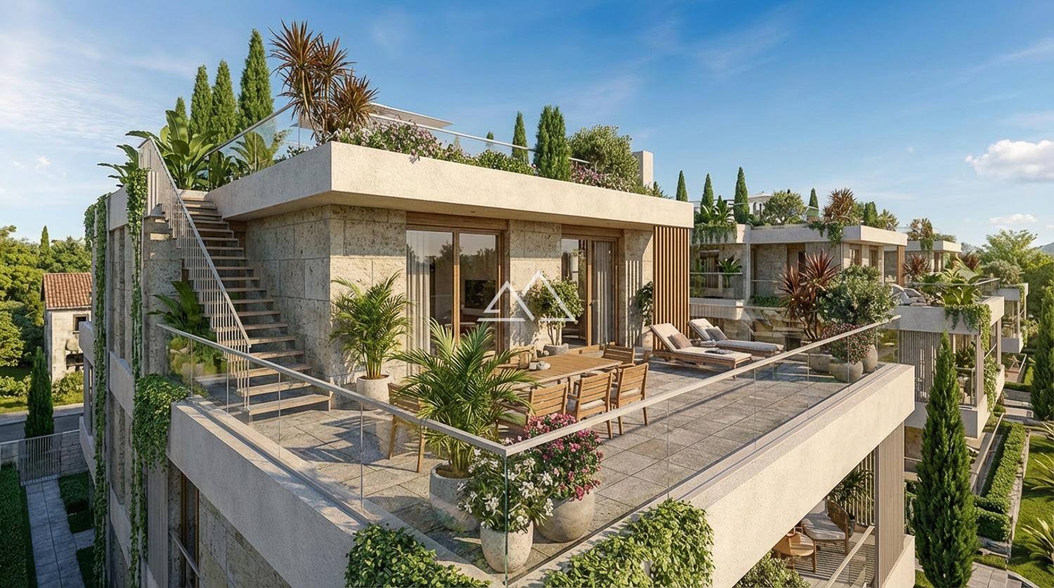 Этот пентхаус станет вашим уютным домом в Тивате, где городской комфорт соединяется с природной гармонией Средиземноморья.
