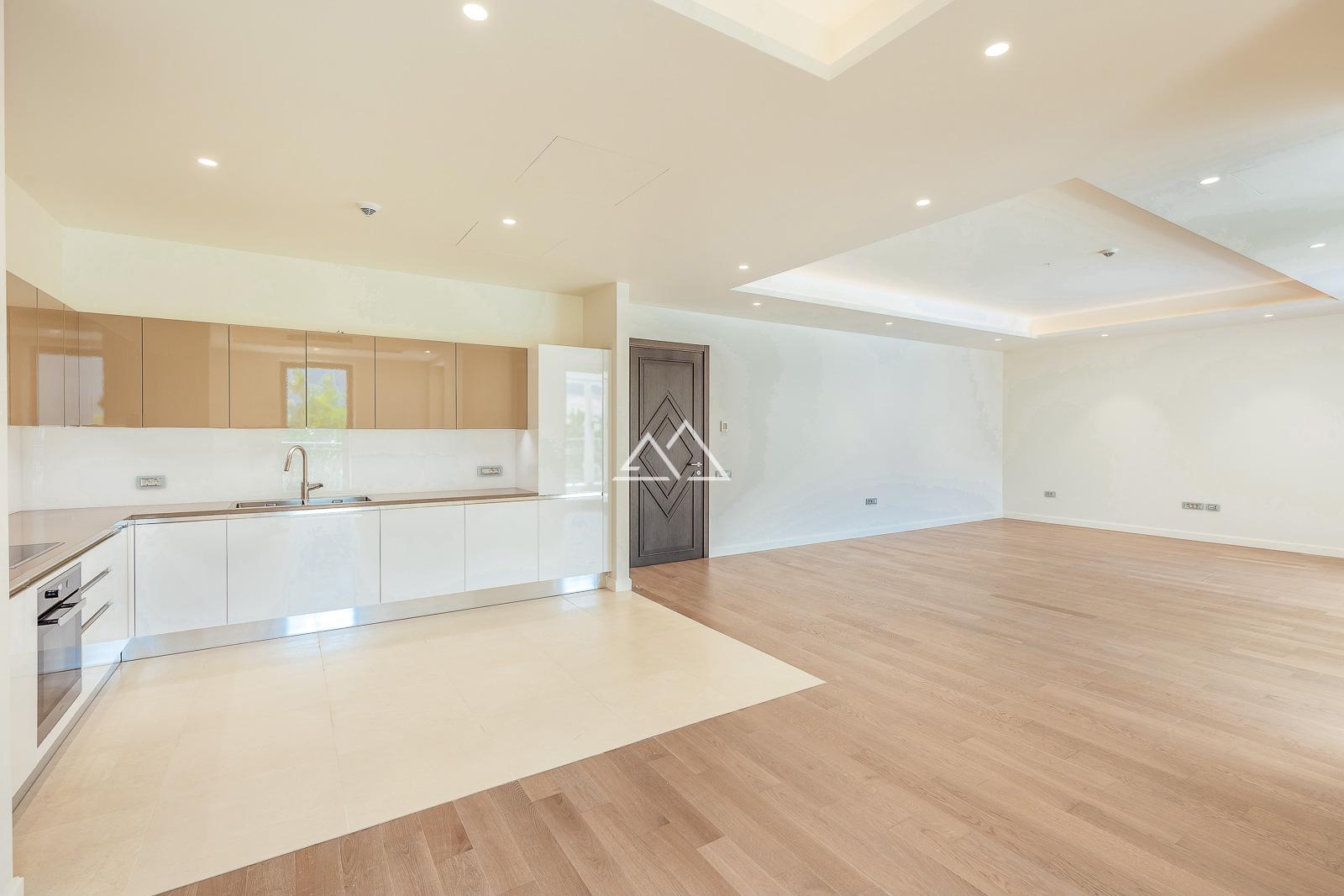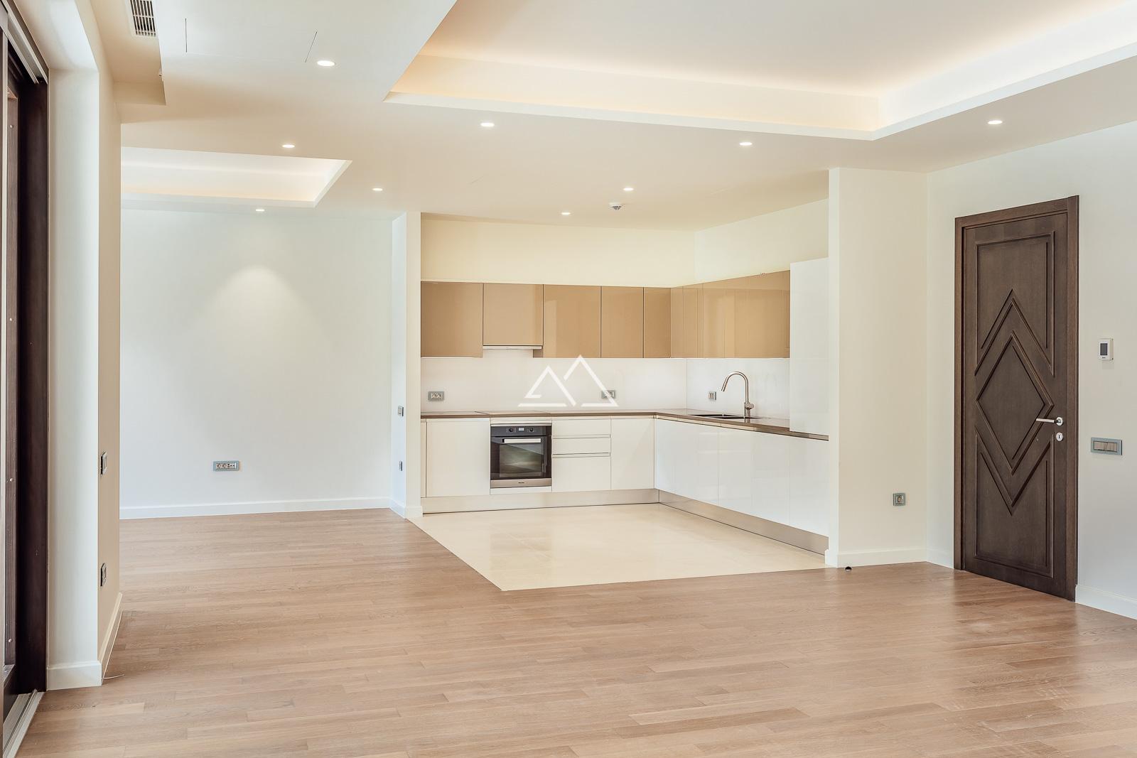 - элегантная отделка в пастельных тонах; апартаменты полностью укомплектованы встроенной кухней, шкафами и качественной сантехникой;