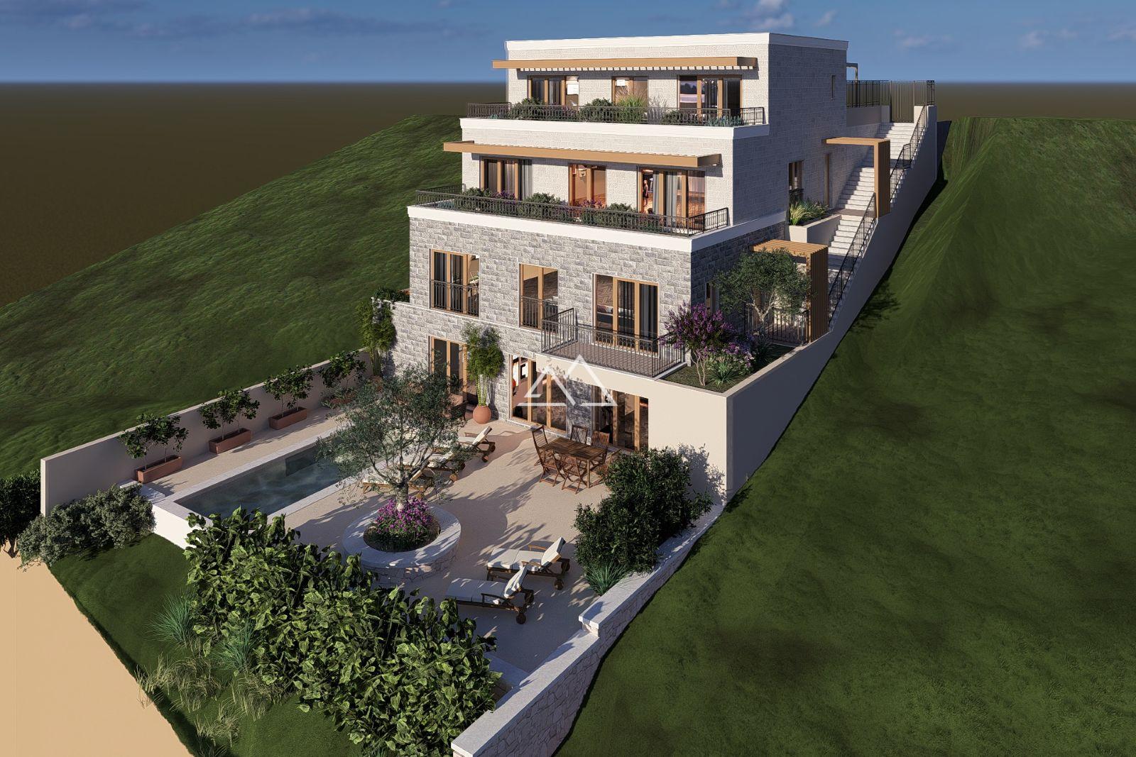 Предлагается к продаже урбанизированный земельный участок в престижном районе Донья Ластва, Тиват, с великолепным видом на море и Бока-Которскую бухту. С участка открывается панорамный обзор на набережную и исторические достопримечательности, включая церковь Святого Рока.