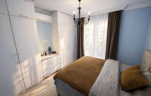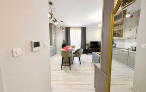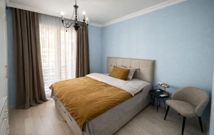 Апартаменты находятся на 2 этаже и включают просторную гостиную с кухней, спальню, ванную комнату и террасу с видом на горы. Полностью меблированы и готовы к проживанию.