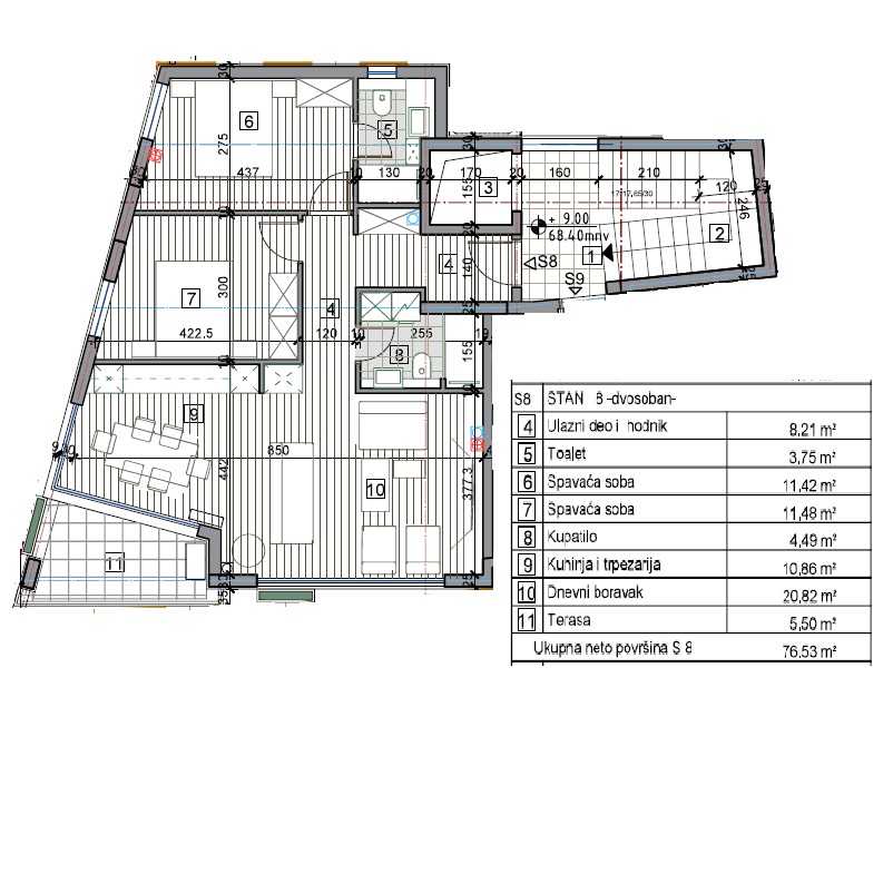 Апартаменты с двумя спальнями в новом доме в Рафаиловичи.