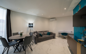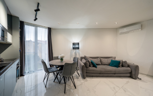 Готовые к заселению апартаменты с мебелью и техникой в пешей доступности от пляжа. Расположены на втором этаже современного дома.