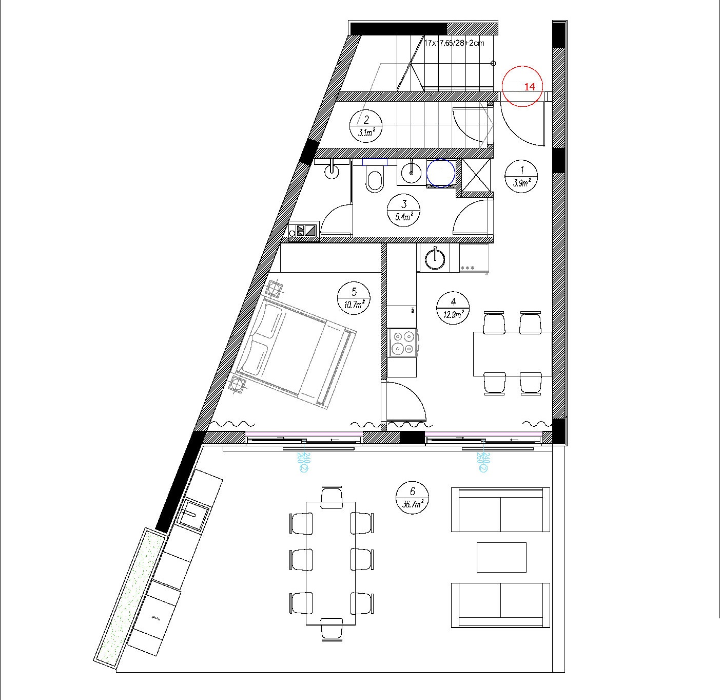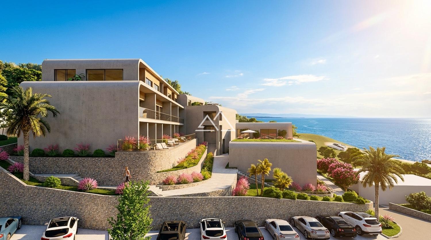 • Большая терраса площадью 37 м² с видом на море и бассейн